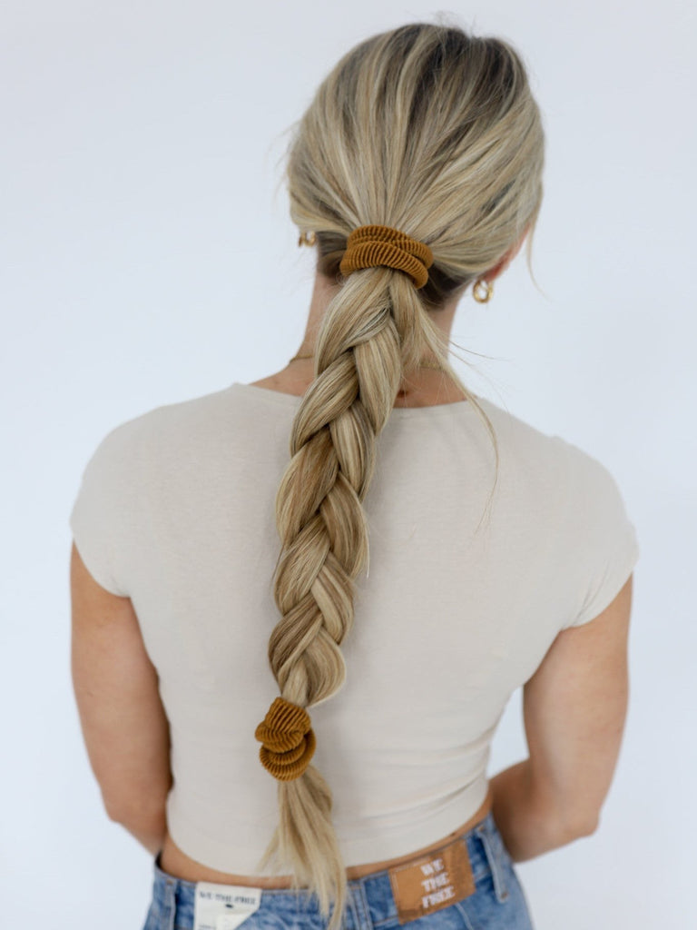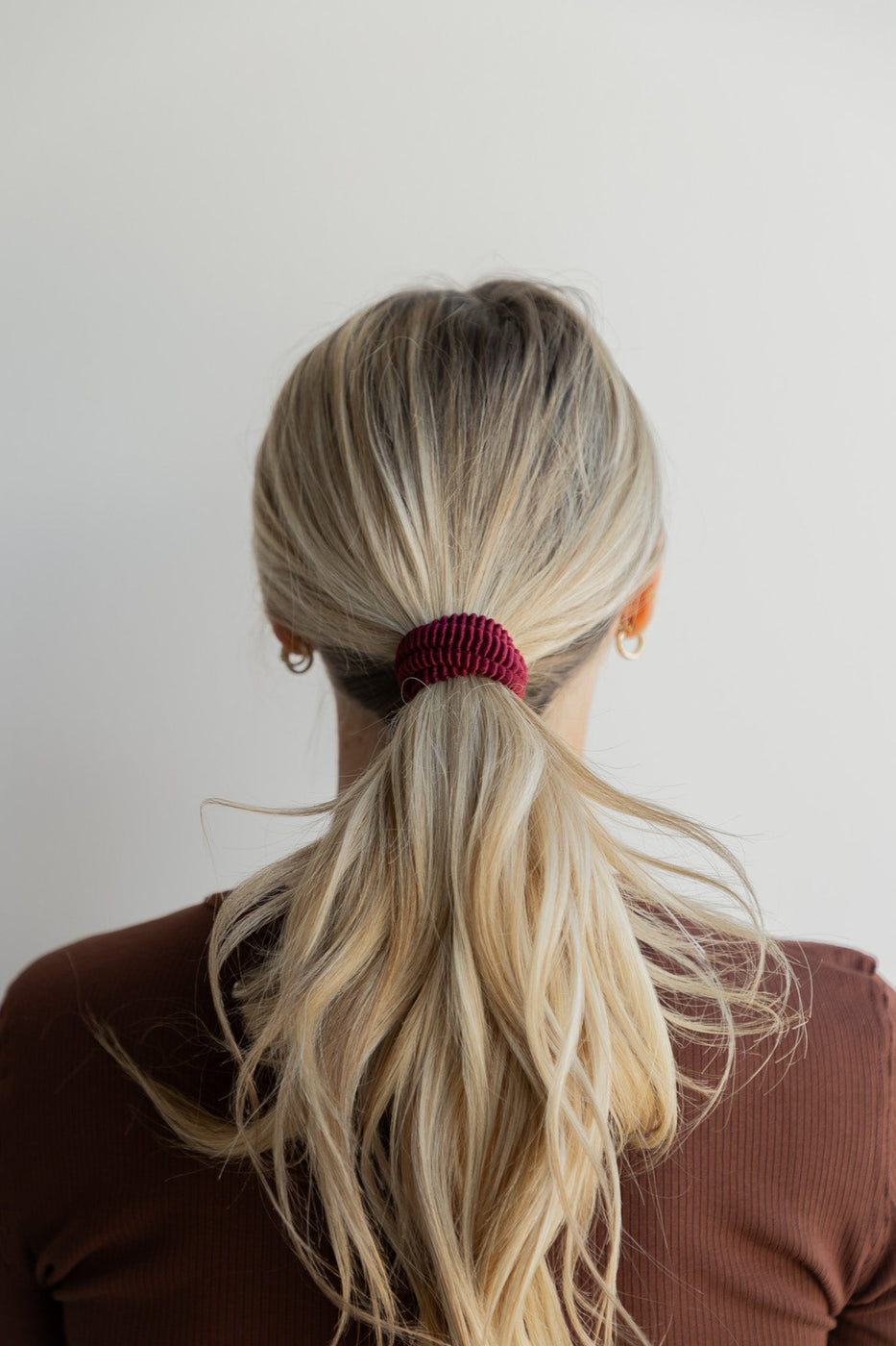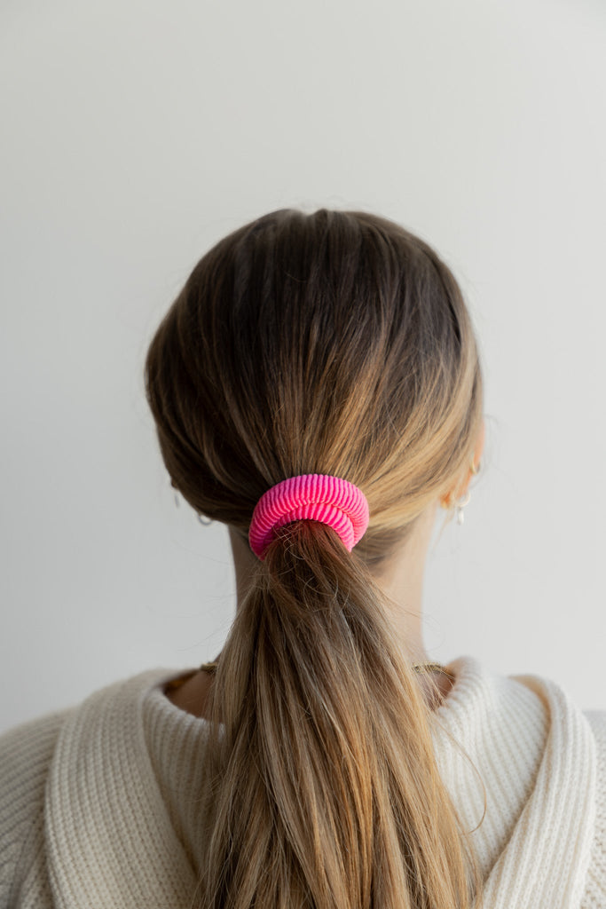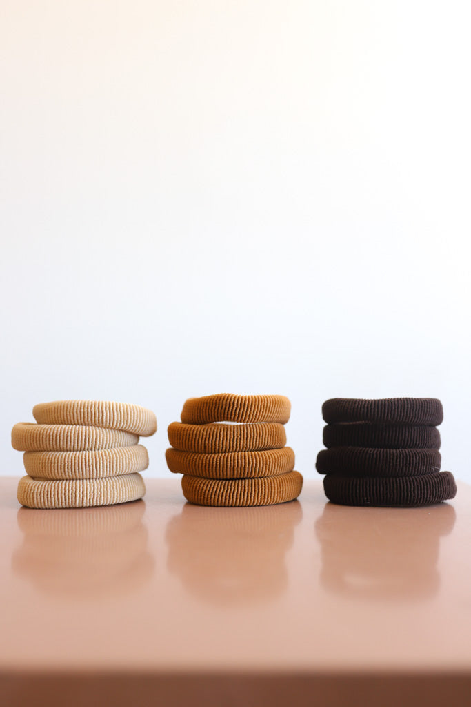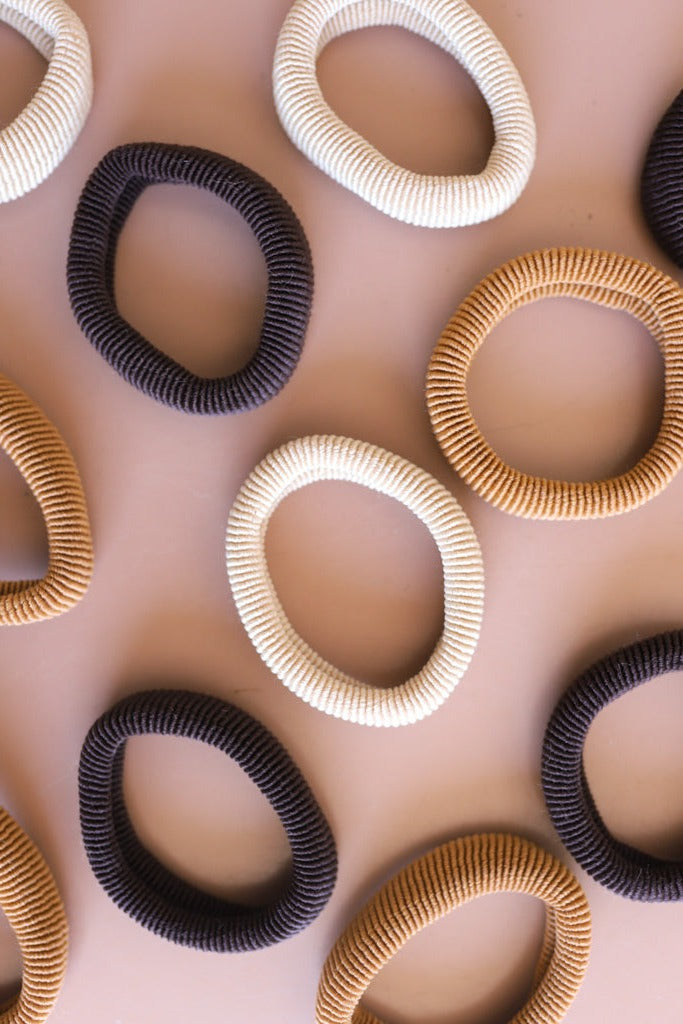 Our slick back ponytails come in 14 different color options. They are perfect if you need a tight elastic for your high intensity workout, but still offer a stylish look and this elastic is just fabric with no elastic on the inside to damage your hair. Perfect for pool days, high intensity workouts, or everyday use! Comes in a pack of 3.