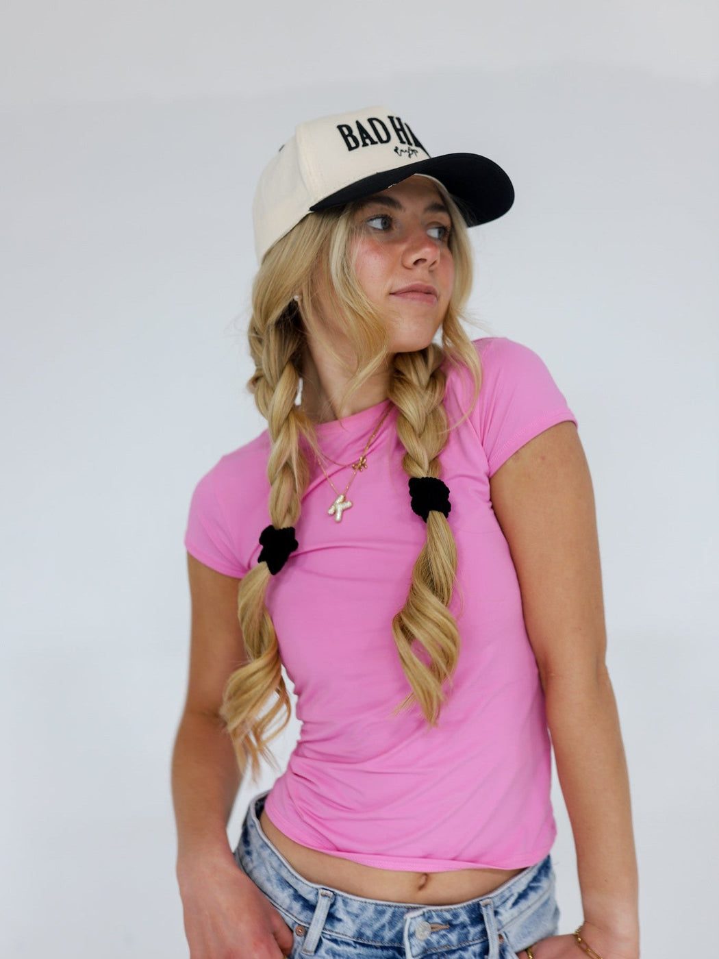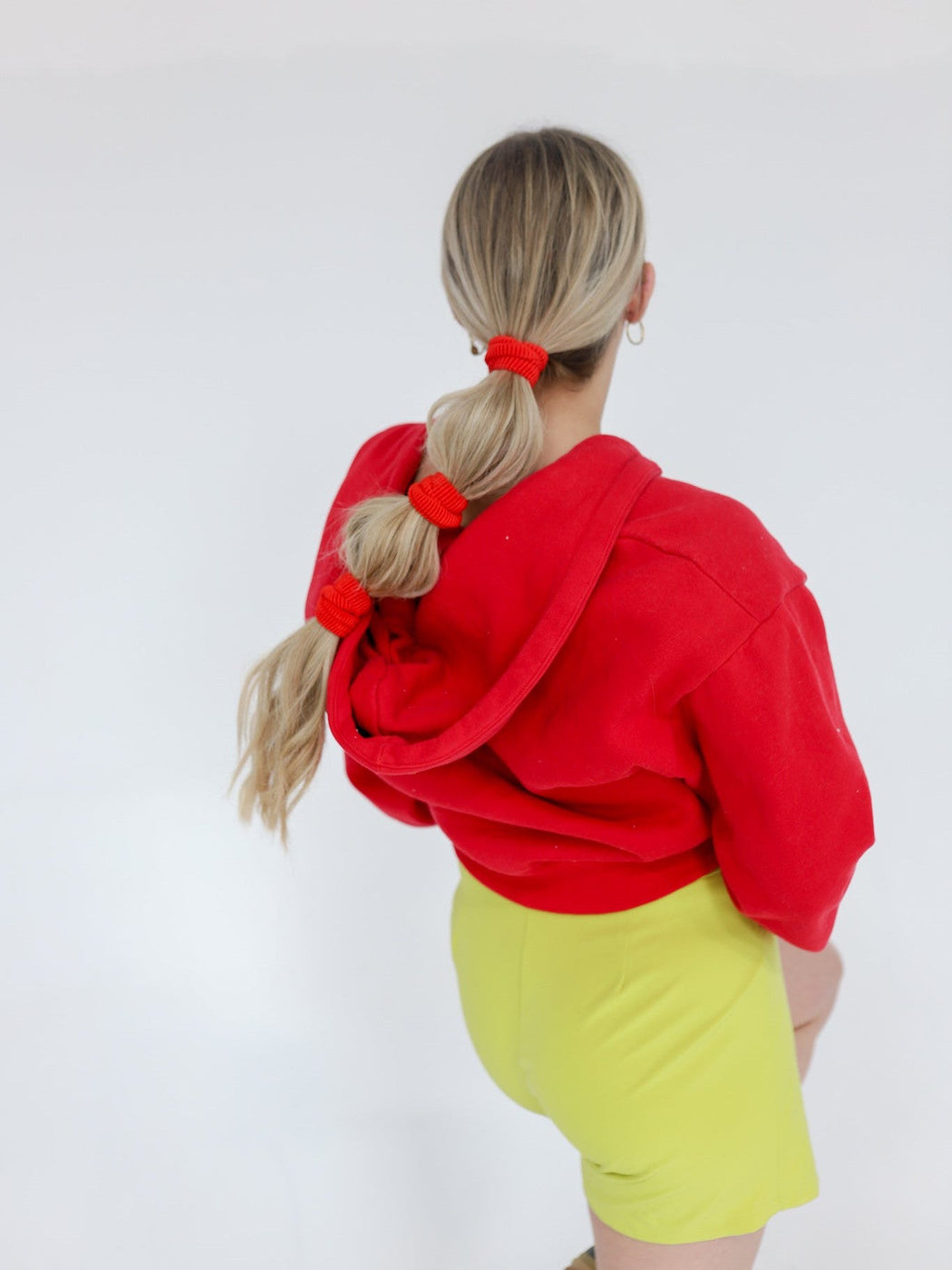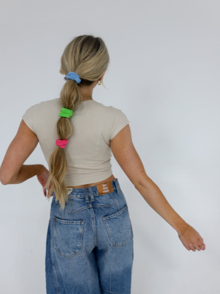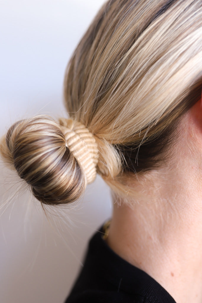 Our slick back ponytails come in 14 different color options. They are perfect if you need a tight elastic for your high intensity workout, but still offer a stylish look and this elastic is just fabric with no elastic on the inside to damage your hair. Perfect for pool days, high intensity workouts, or everyday use! Comes in a pack of 3.