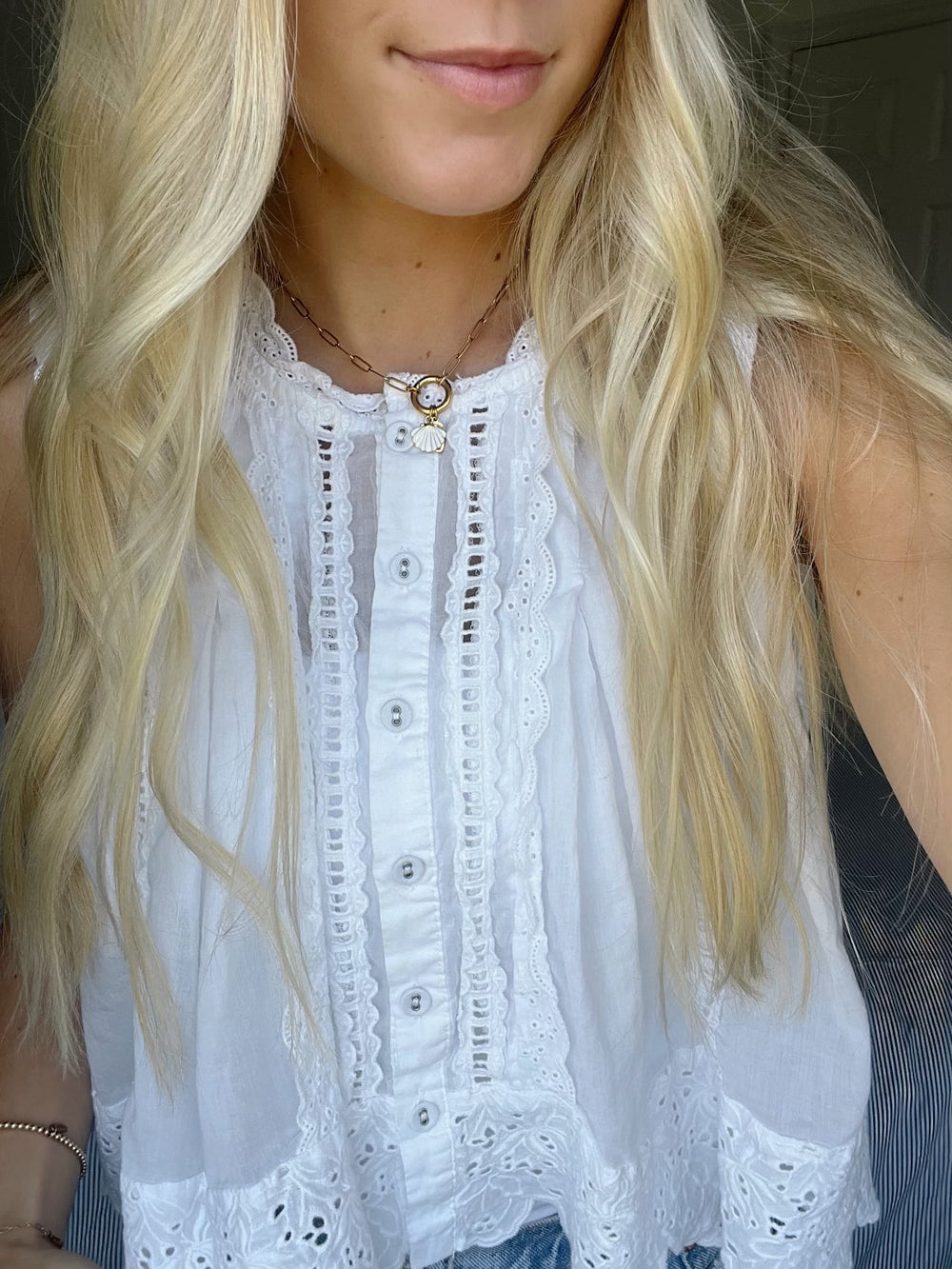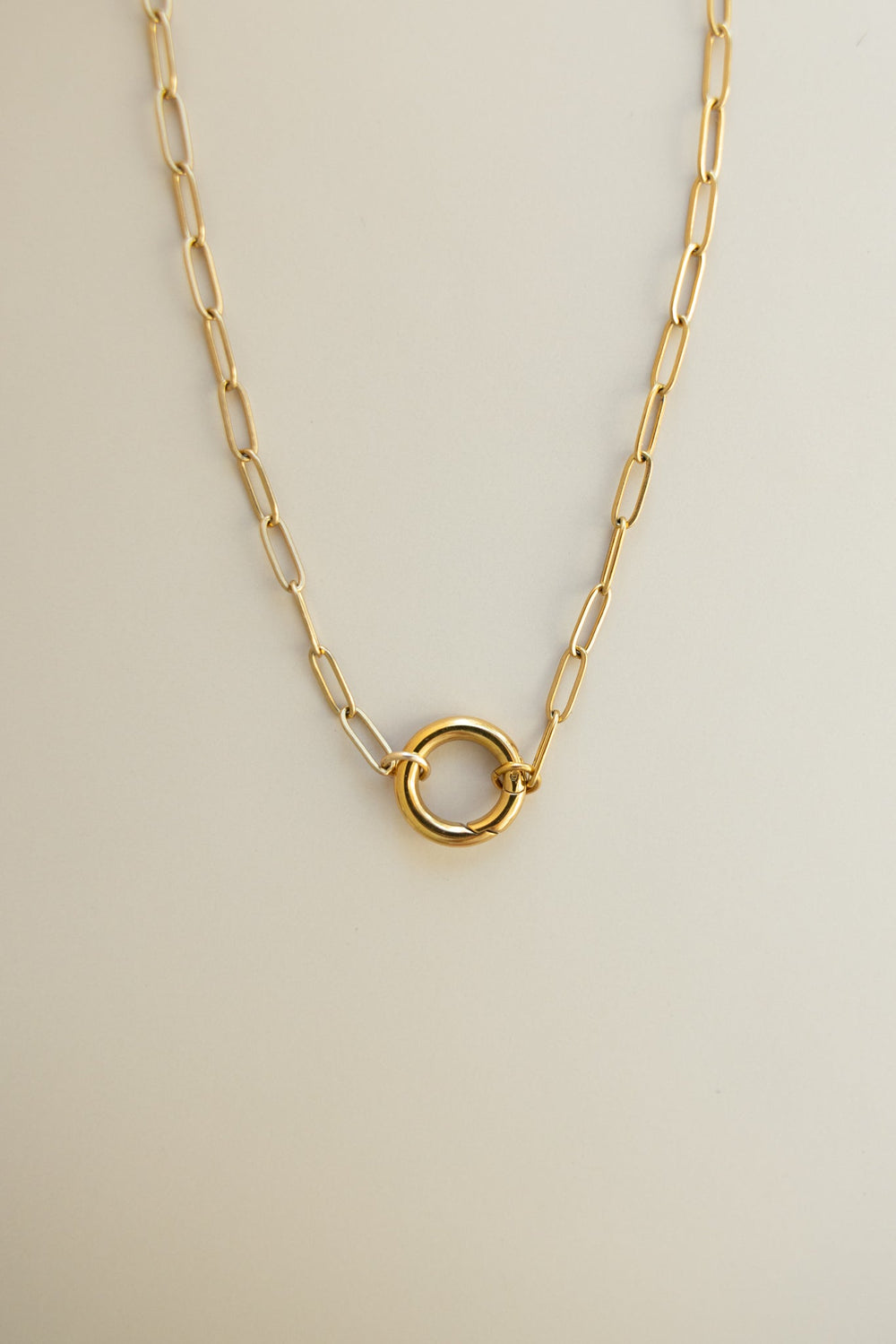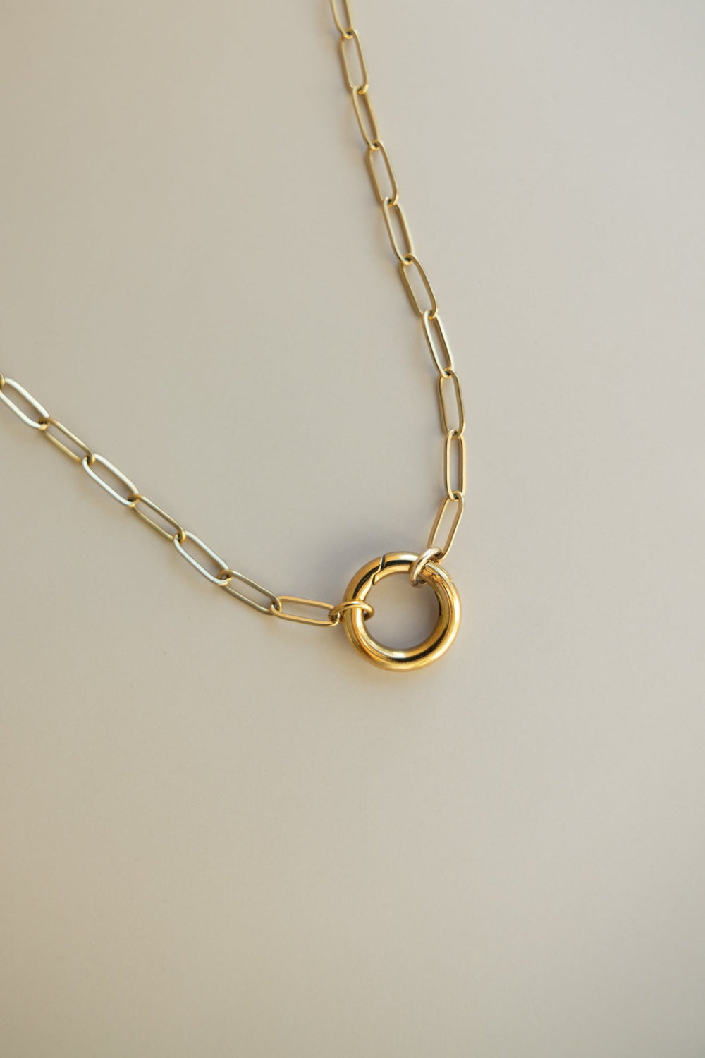 Handcrafted gold filled paper clip chain, and 12mm gold filled round self closing closure.