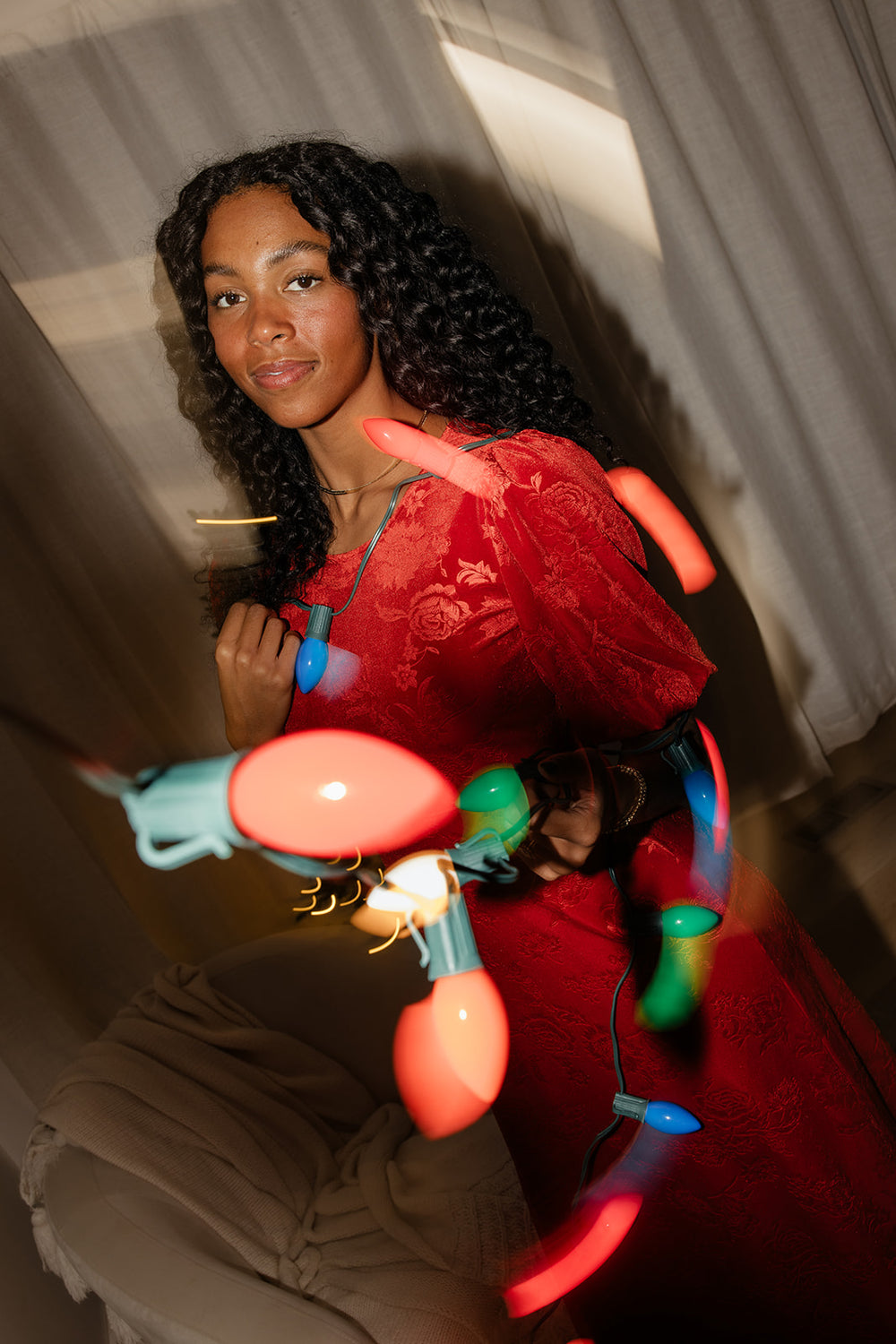 A bold, feminine midi featuring puff sleeves and a rich textured fabric. Statement-making yet comfortable — a perfect holiday event dress.