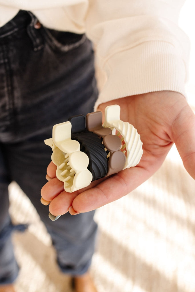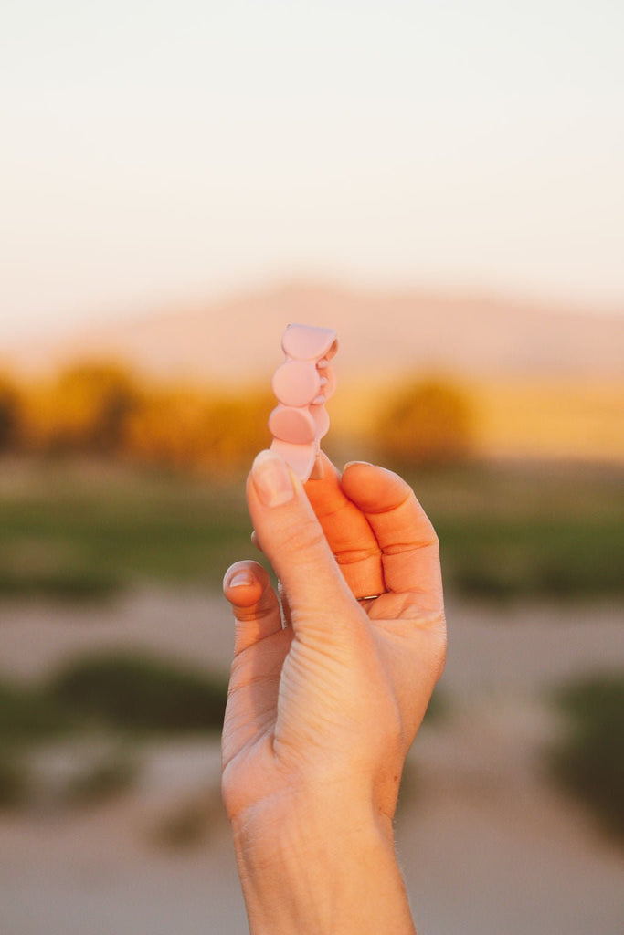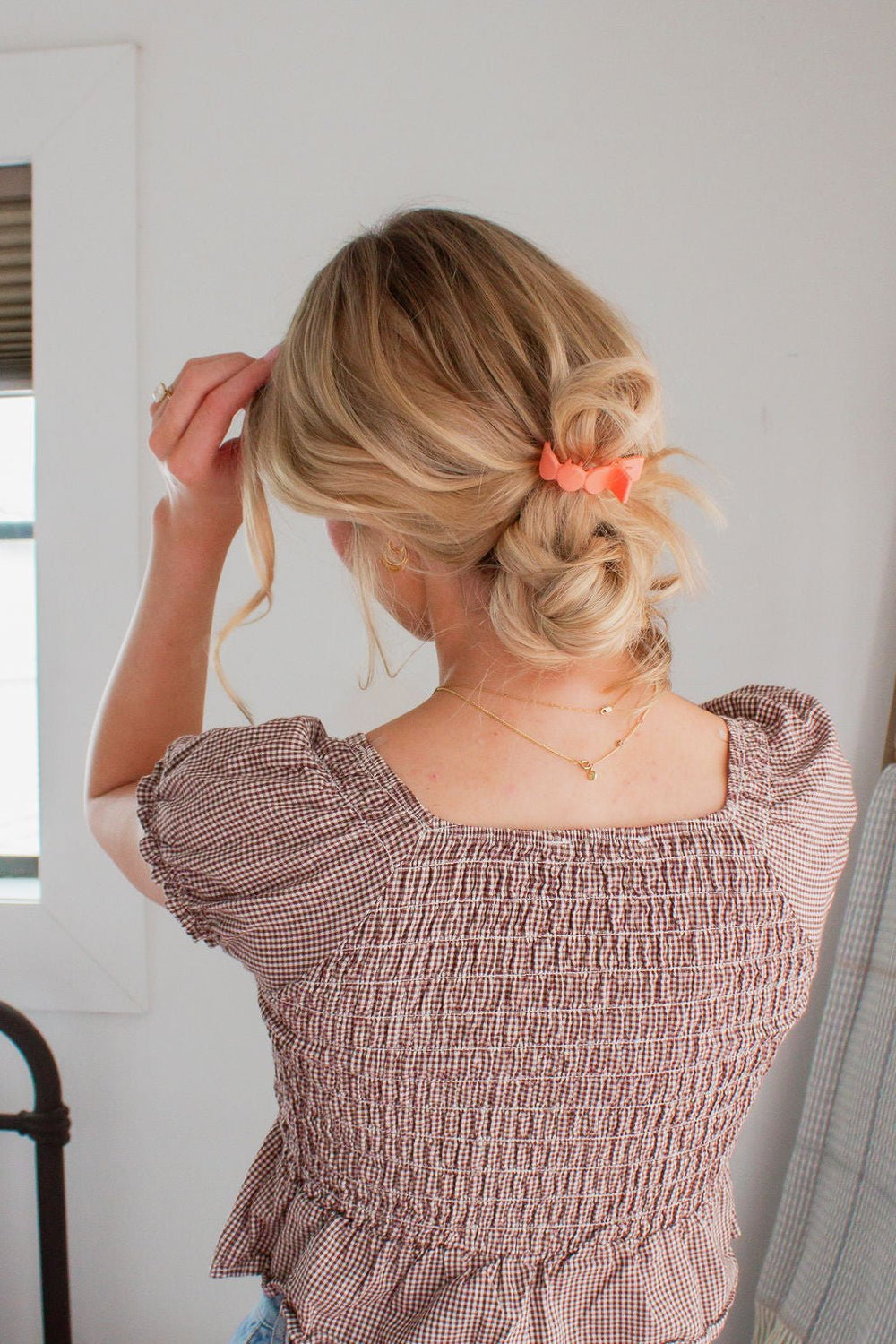 These are the perfect ponytail claw clip in the cutest colors! I love the little detail on them and it measures less than 1 inch wide. I absolutely LOVE this unique style of clip for covering up your ponytail holder & level up your ponytail game!!