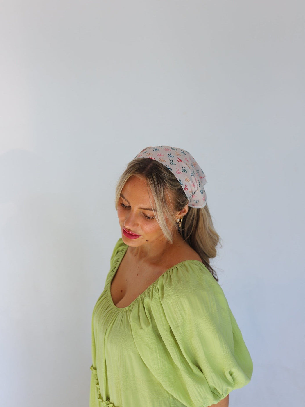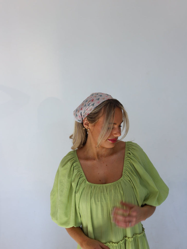 Our bandanas are not only versatile, but are trendy + unique. Wear them around your head many different ways, around your neck, or around your bags! It measures in a square shape at about 20x20 inches long. Wear in a ponytail, around your neck, on a bag, or on the back of your head. This is a very neutral print.