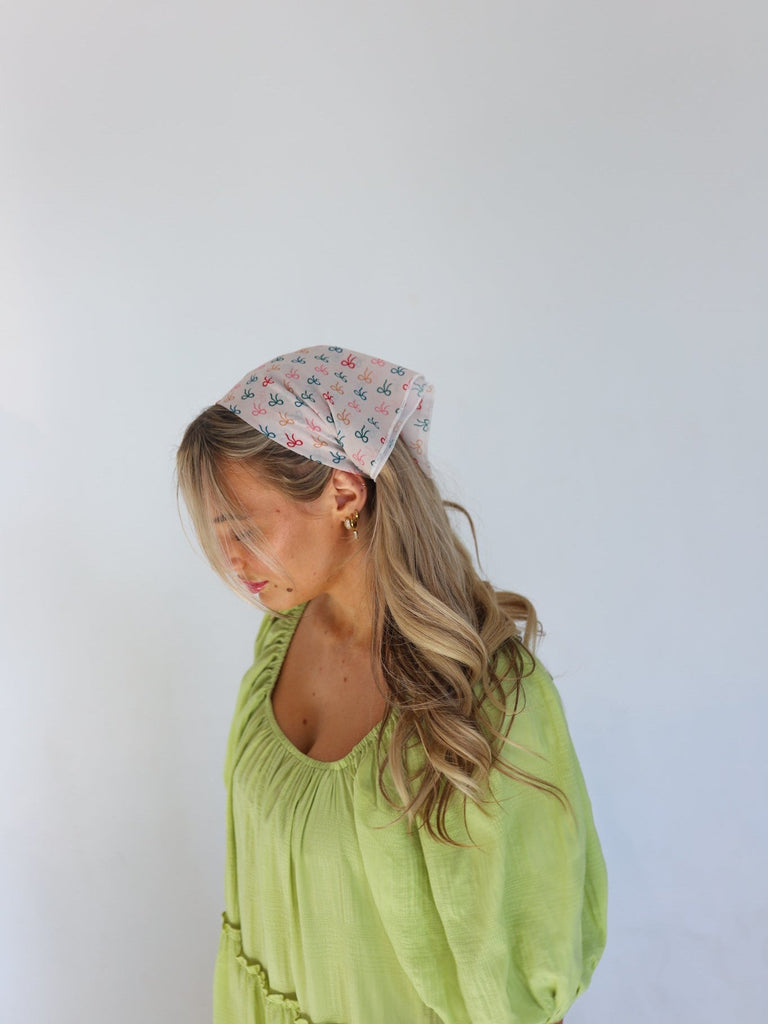 This bandana comes in a KAXI original print in an assortment of colorful bows!