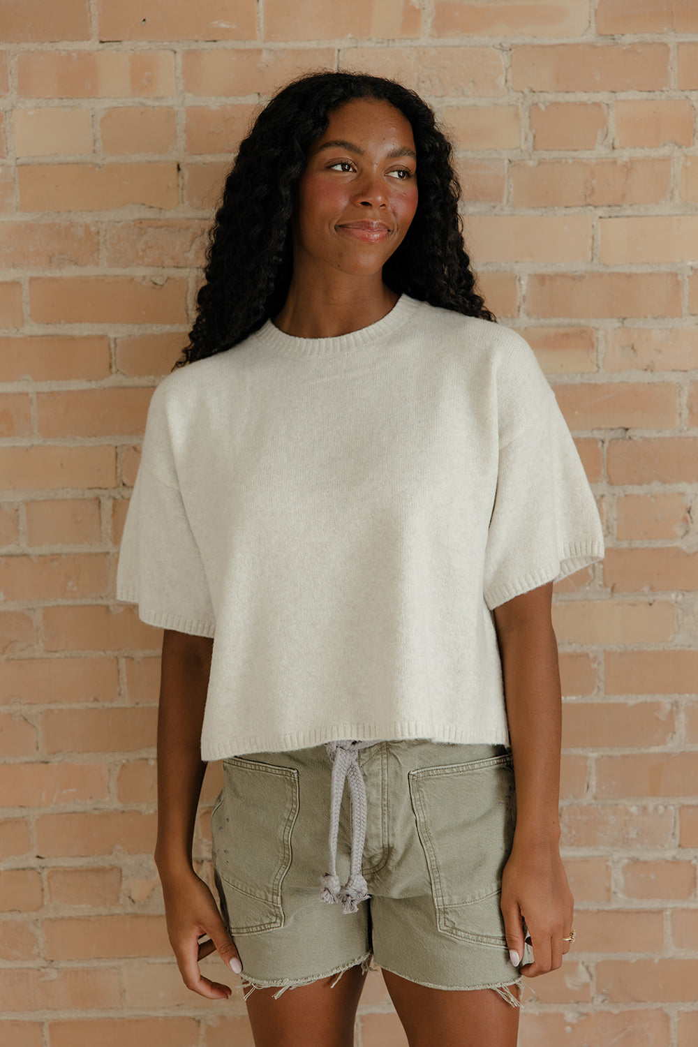 Cozy and refined with a relaxed silhouette. This short sleeve sweater is perfect for transitional days when you want comfort with a polished touch.
