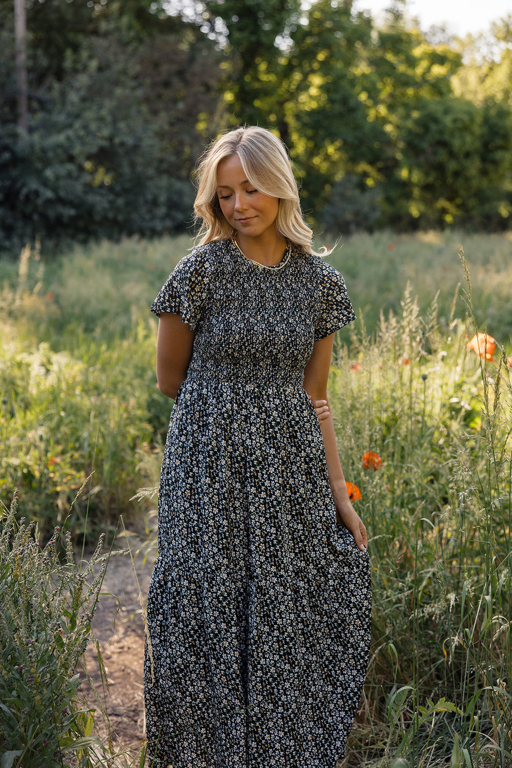 Step into the season with the Rachelle Smocked Maxi! It features a round neckline, smocked bodice, and a playful tiered skirt. Choose from two lovely colors. Perfect for any occasion, it's a must-have for your closet!