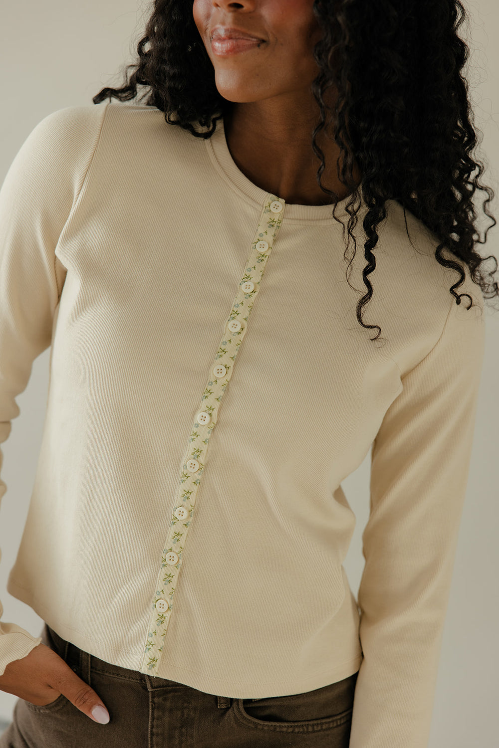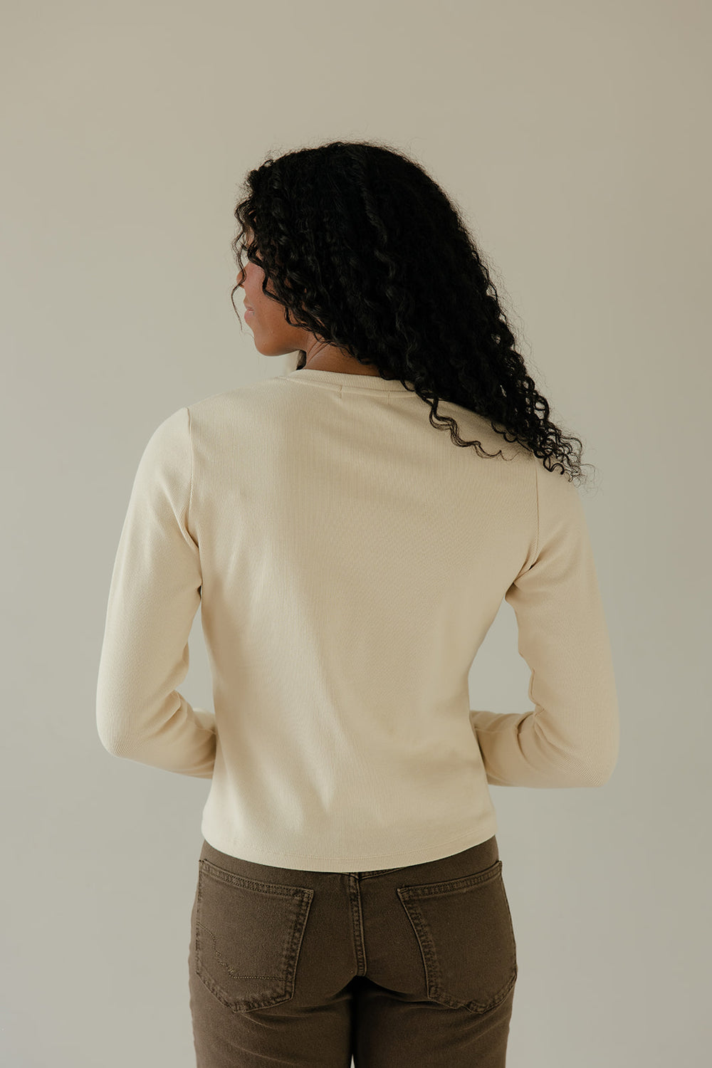 An elevated basic with subtle button details and a clean silhouette. Perfect for pairing with denim or trousers for a pulled-together look.
