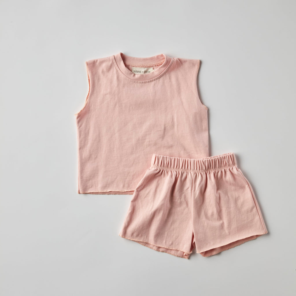 Keep your little ones comfortable and stylish this spring and summer with the Remy Set. Made with soft and breathable cotton, this set is perfect for both boys and girls and features a loose, sleeveless top and shorts with a raw hem. Perfect for babies and toddlers.