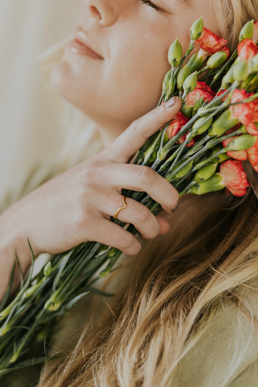 The Ricky Peak Ring is simple yet stunning. Featuring a wave or peak, this ring pairs well with others for the perfect stack! You can't go wrong with how you style this cute ring!