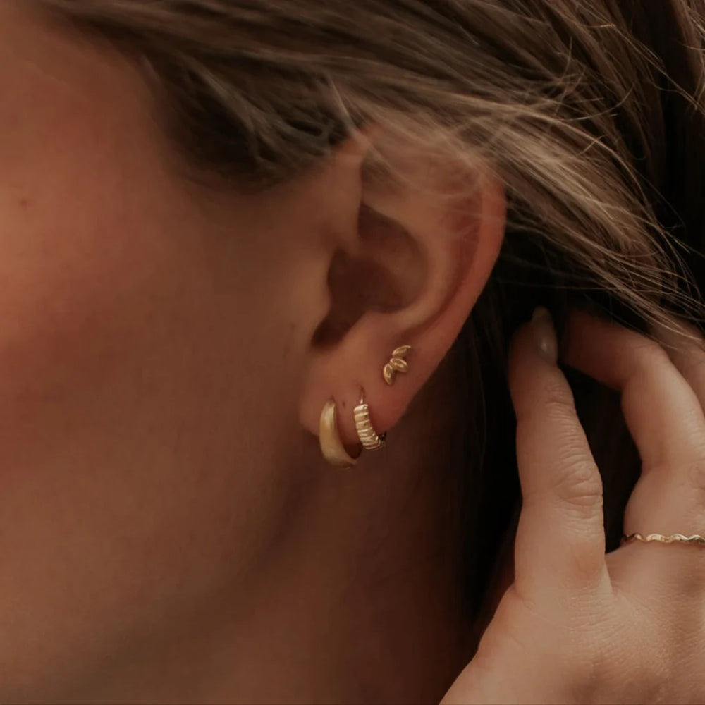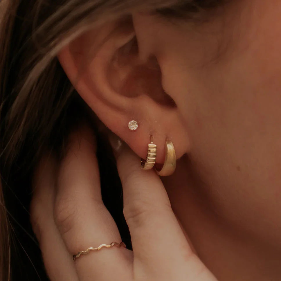The Rory Hoops are the perfect subtle hoops that go with anything! Featuring a huggie closure style and made from from high quality gold vermeil or sterling silver. Perfect on their own or in an earring stack!