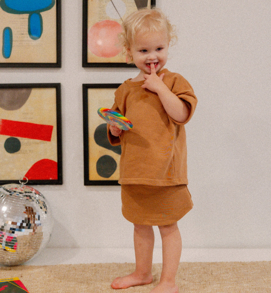 Get your little girl ready for playtime with our Scout Skort Set. Made from comfy french terry material, this set includes a shirt with a raw hem and a skirt with shorts underneath. Perfect for baby and toddler girls and ideal for play, daycare, preschool and everything in between.