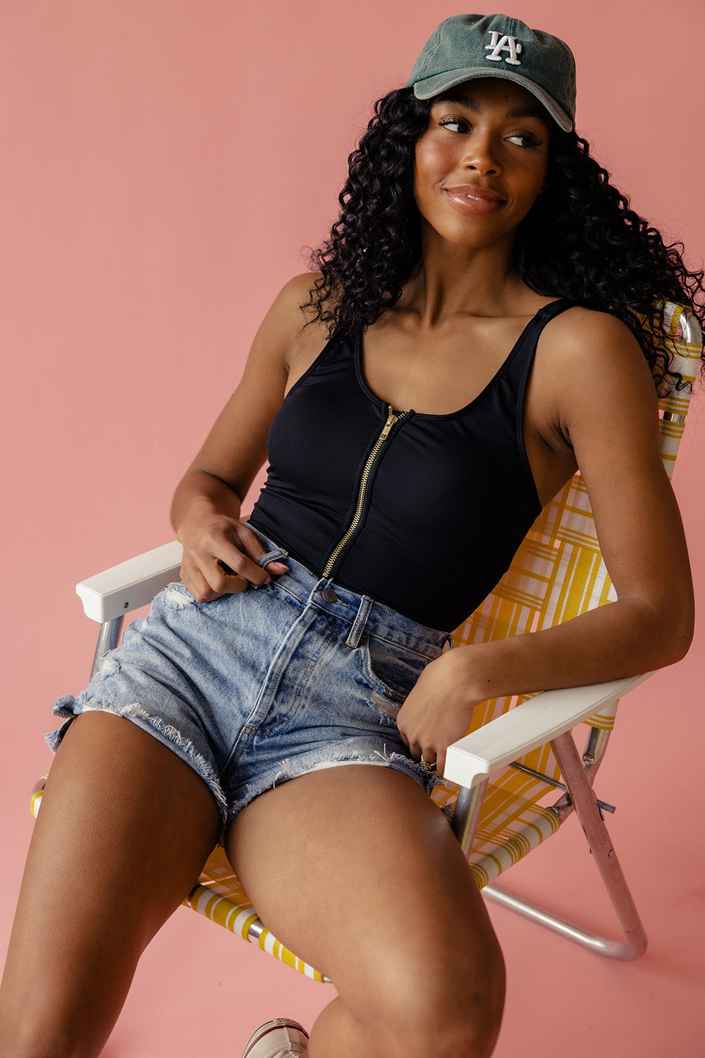 The Selena Zip Up One Piece is a total game changer. The micro-ribbed fabric fits like a glove, while the zip front gives it that edgy touch. Wide, adjustable straps keep you comfy all day, and the self-tie back lets you customize your fit. Now all you need is a little sunshine! ☀️