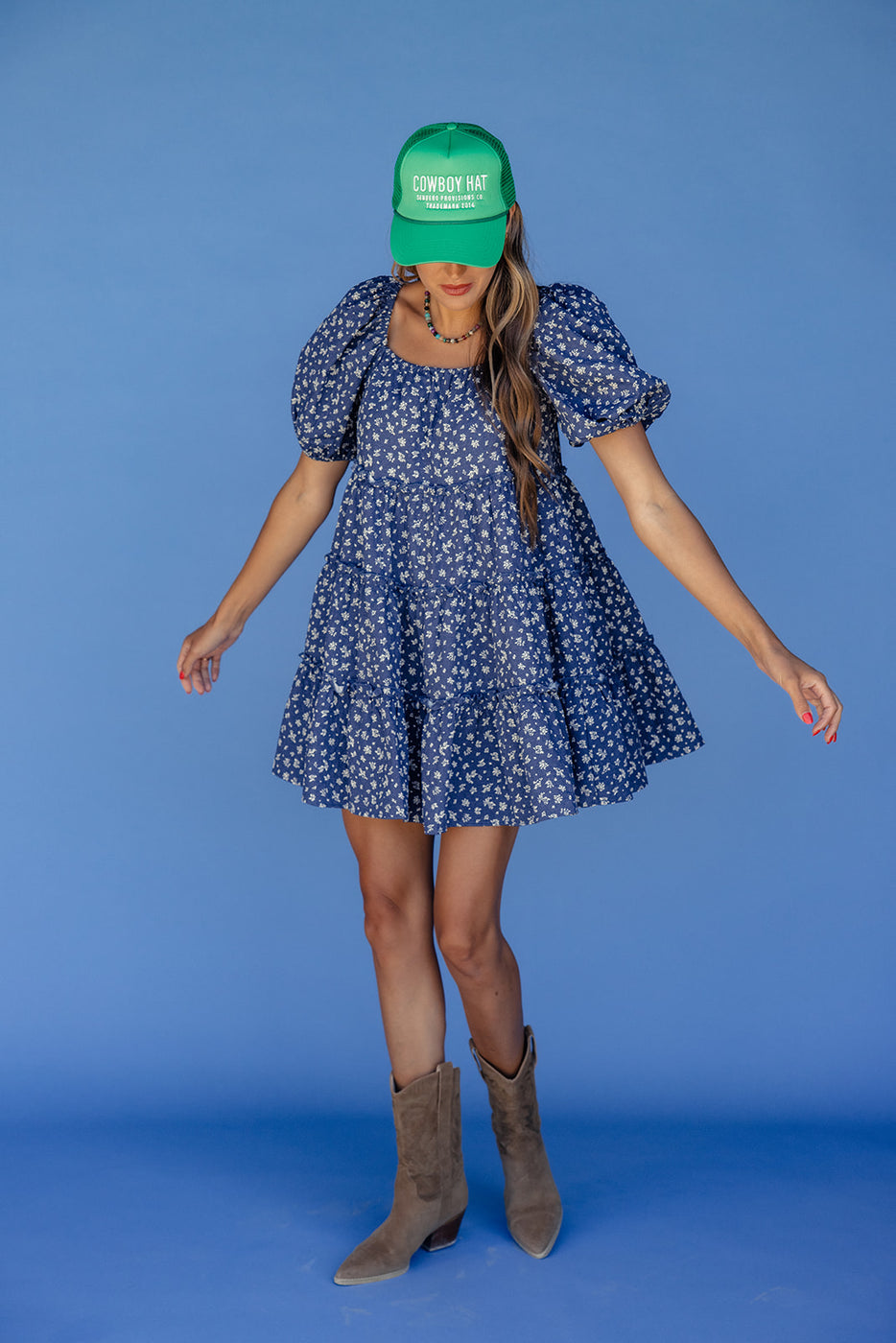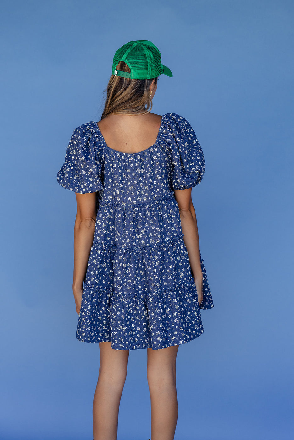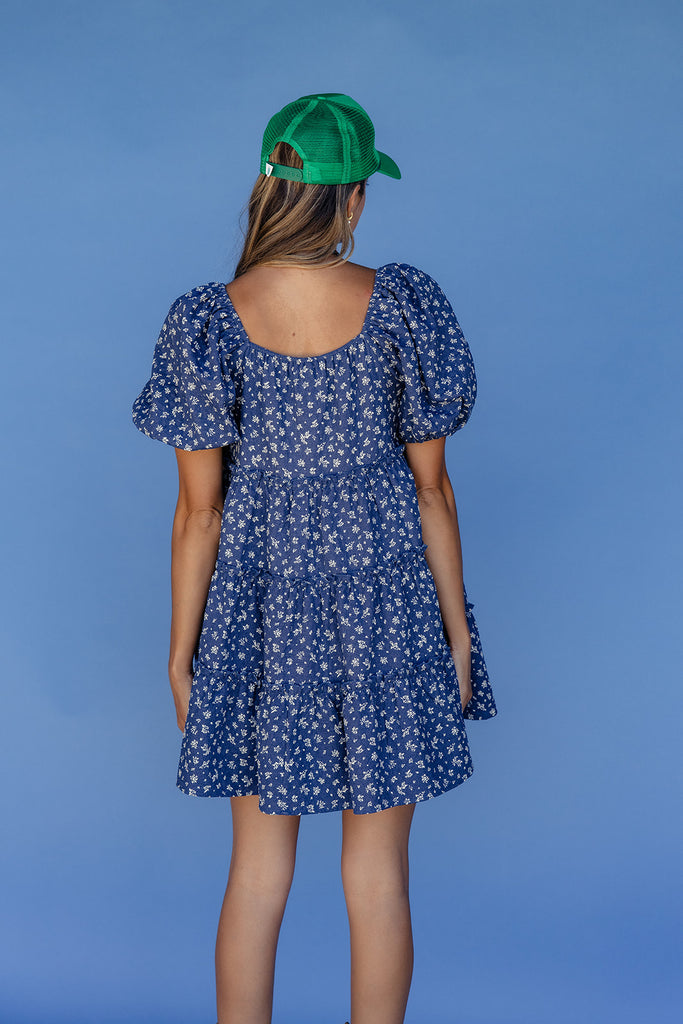 This flirty blue floral mini dress features puff sleeves, a scoop neckline, and a breezy tiered silhouette. Lightweight and easy to wear, it's the perfect throw-on-and-go dress for sunny days and casual adventures.