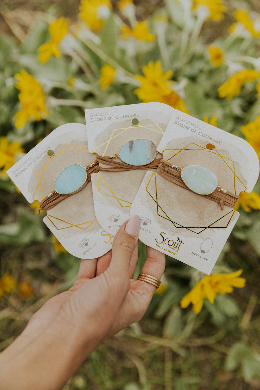 Soft buttery vegan suede and rich semi-precious stones intertwine around your wrists or neckline. Effortlessly converts from bracelet to necklace. Can be wrapped 3 times as a bracelet. The sliding magnetic clasp adjusts so you can wear this as a necklace!