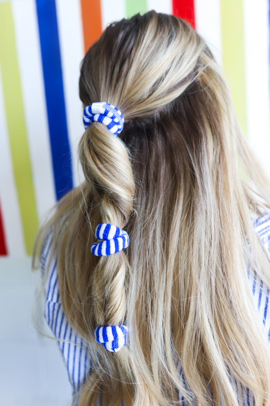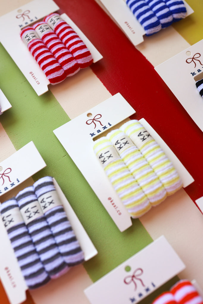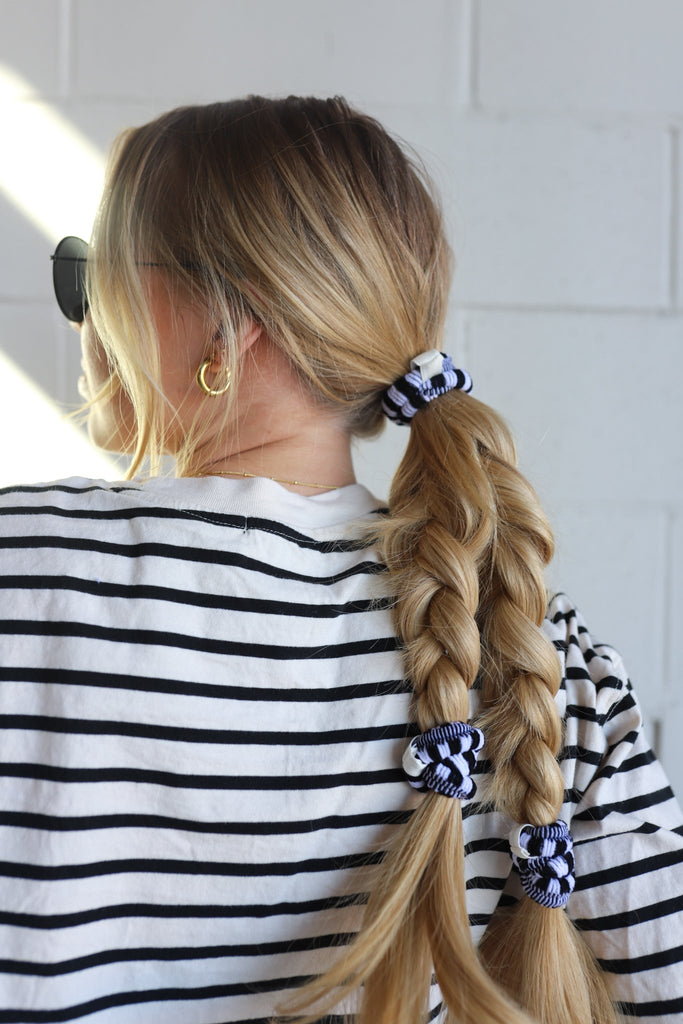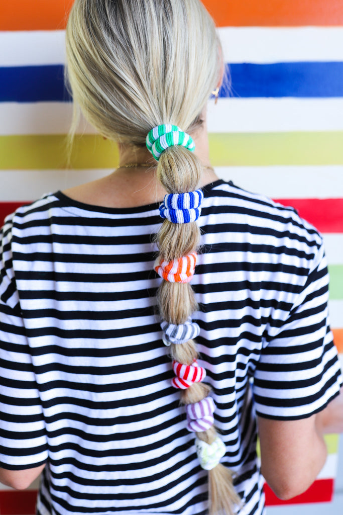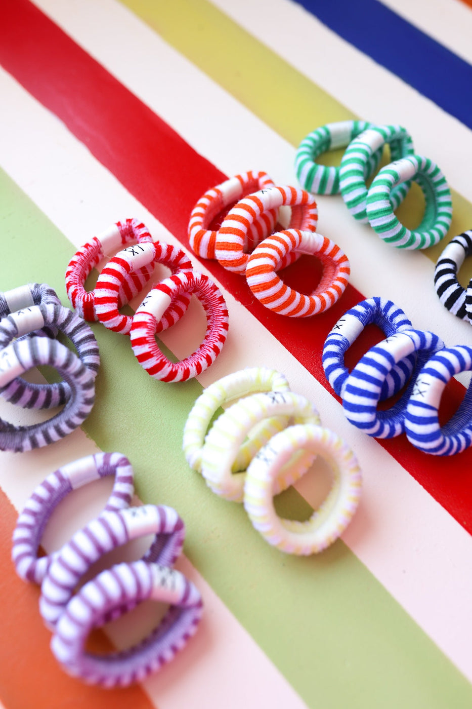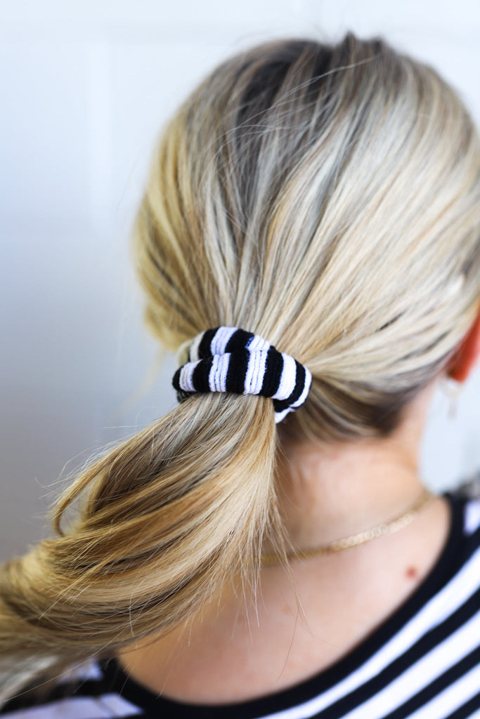These come in a fun, bold striped print and all completed with our very own KAXI logo on it!! Crafted with a durable yet snug nylon material, these hair ties are designed to keep your hair in place without tugging or causing pain. They are perfect if you need a tight elastic for your high intensity workout, but still offer a stylish look and this elastic is just fabric with no elastic on the inside to damage your hair. Say goodbye to breakage around your face. Works for thin to thick hair! Perfect for pool days, high intensity workouts, or everyday use!
