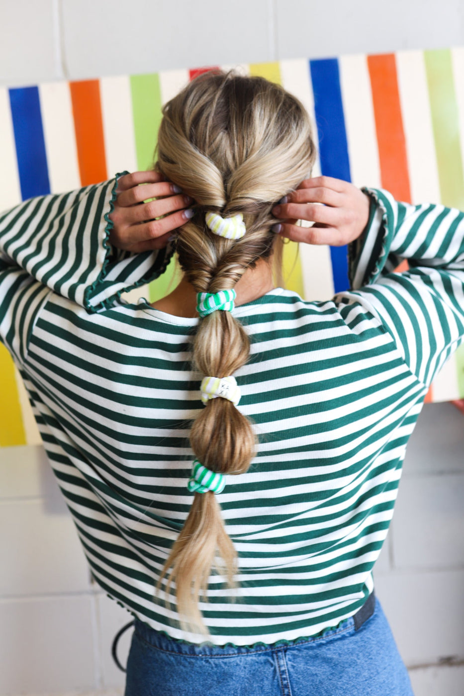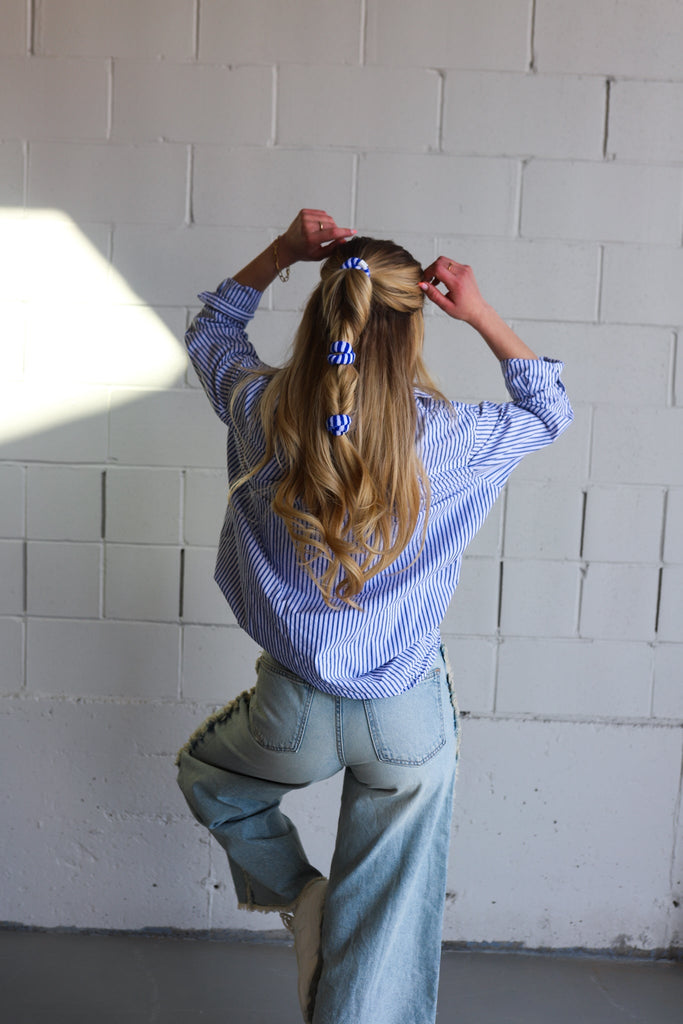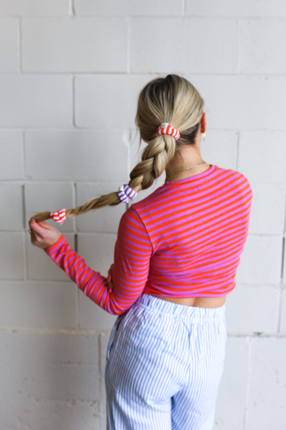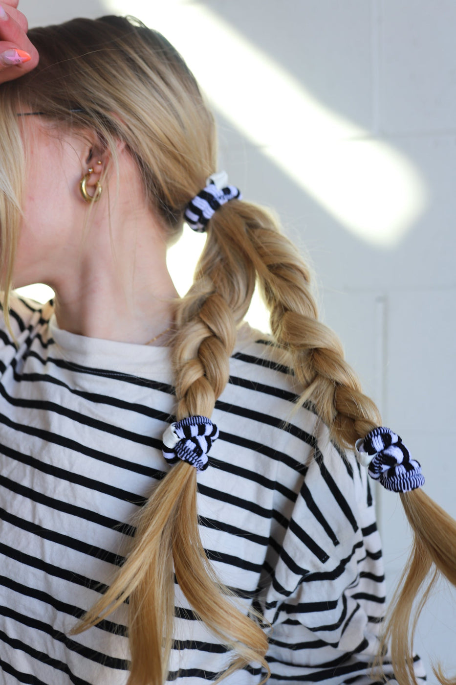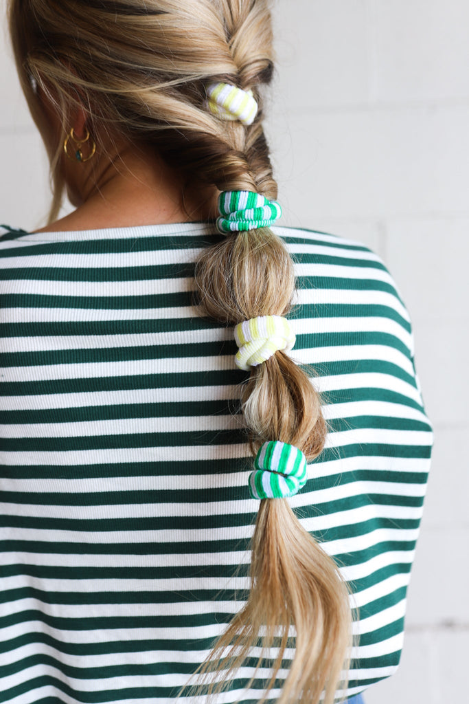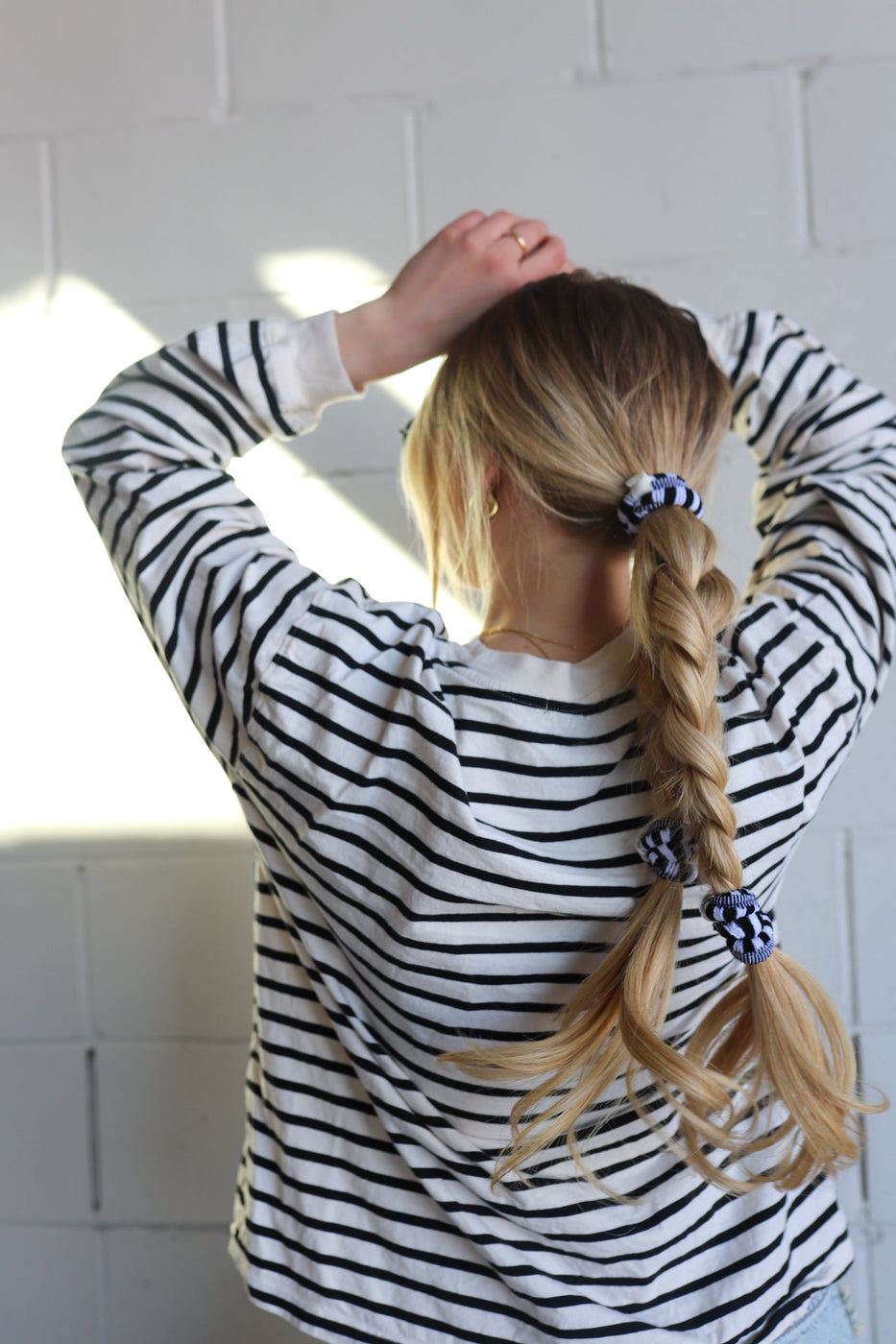 These come in a fun, bold striped print and all completed with our very own KAXI logo on it!! Crafted with a durable yet snug nylon material, these hair ties are designed to keep your hair in place without tugging or causing pain. They are perfect if you need a tight elastic for your high intensity workout, but still offer a stylish look and this elastic is just fabric with no elastic on the inside to damage your hair. Say goodbye to breakage around your face. Works for thin to thick hair! Perfect for pool days, high intensity workouts, or everyday use!