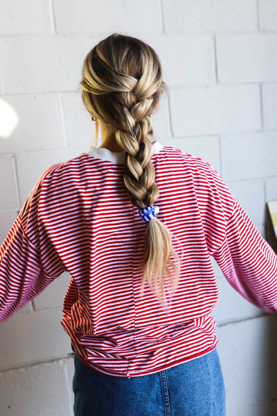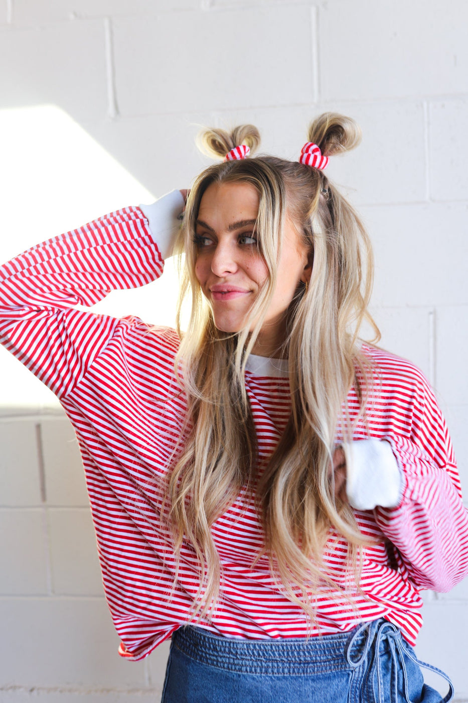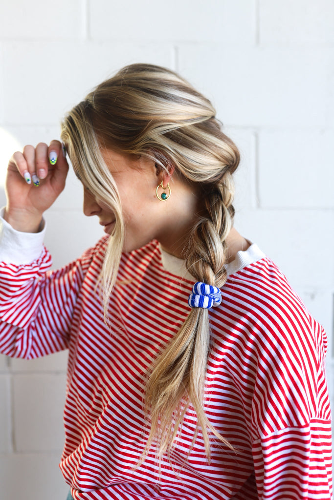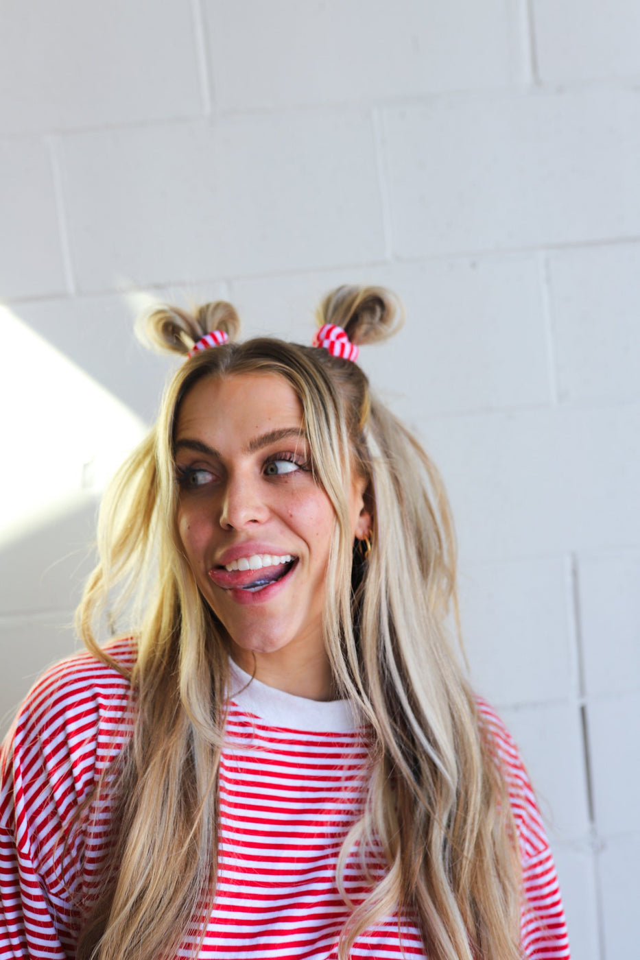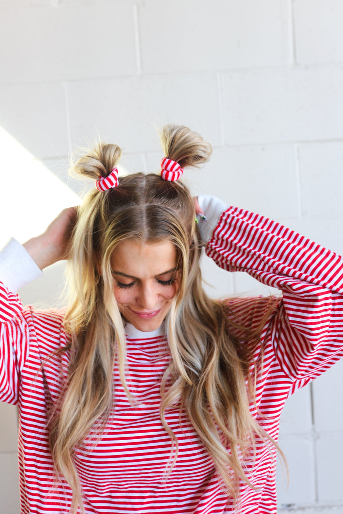These come in a fun, bold striped print and all completed with our very own KAXI logo on it!! Crafted with a durable yet snug nylon material, these hair ties are designed to keep your hair in place without tugging or causing pain. They are perfect if you need a tight elastic for your high intensity workout, but still offer a stylish look and this elastic is just fabric with no elastic on the inside to damage your hair. Say goodbye to breakage around your face. Works for thin to thick hair! Perfect for pool days, high intensity workouts, or everyday use!