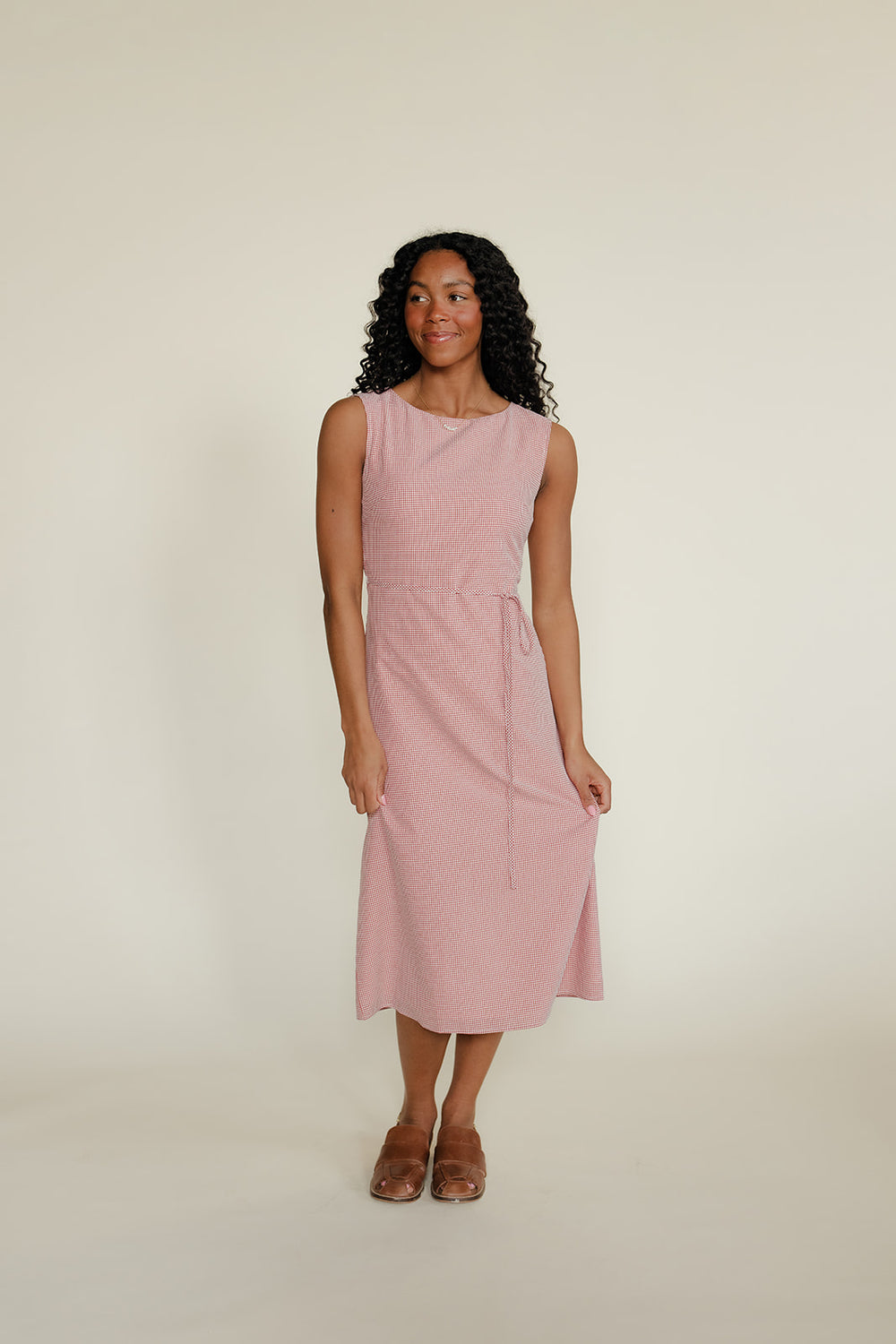 Feminine and flattering with a touch of charm. This gingham dress features a sweet neckline and an easy fit that’s perfect for warm days and special outings.
