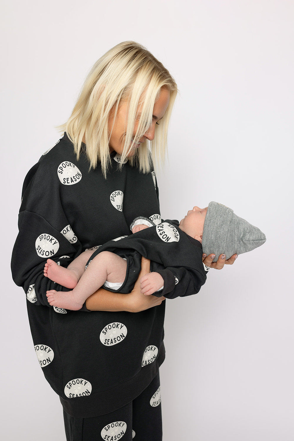 Made for the littlest ones to join in the fun, our sweatshirt romper is cozy, practical, and festive for spooky season. Easy to wear for playtime, outings, or Halloween celebrations, it’s a fall favorite for babies. Don’t forget about the matching mom and child sweat sets for the complete look.