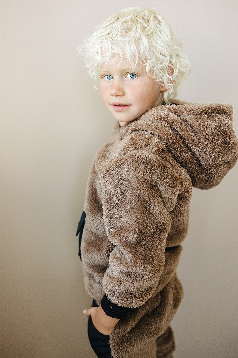 Cozy up your little one in this super soft, furry Teddy Jogger Set! Complete with a functional cargo pocket on the hoodie for storing treats, this set is so cuddly, you won't want to put them down. Bundle your cute little teddy bear in this fun, must-have set!