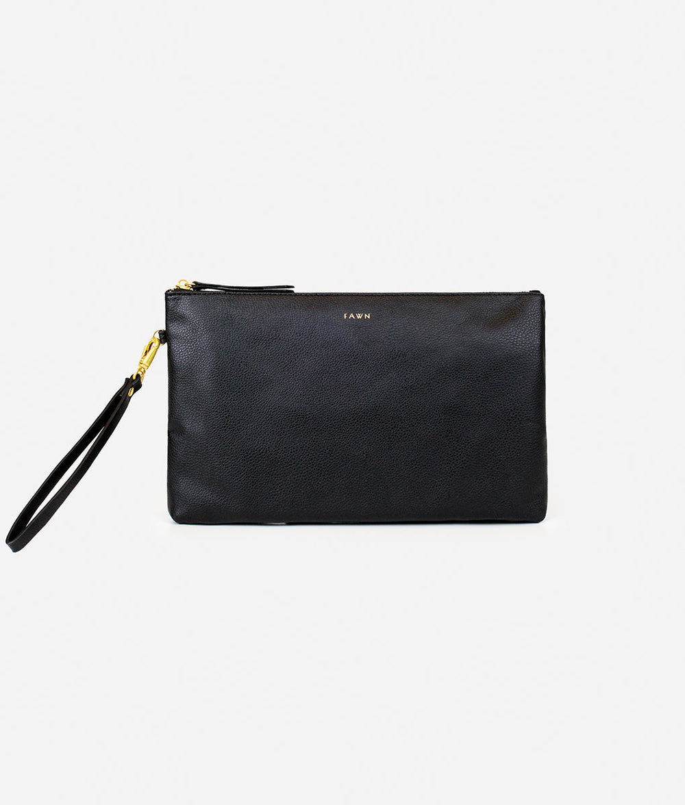 The Fawn Design Changing Clutch is a zippered premium pebbled faux leather clutch. It comes with a color-coordinated faux leather changing mat that folds up and fits inside the clutch. Toss the set in your Fawn Design bag so you’re ready for a diaper change anytime, anywhere. The sleek wristlet clutch is also great for travel, date night, and girl’s night out. The clutch holds all of your essentials like cash, cards, lipstick, etc., making it the perfect accessory. Included with the clutch: