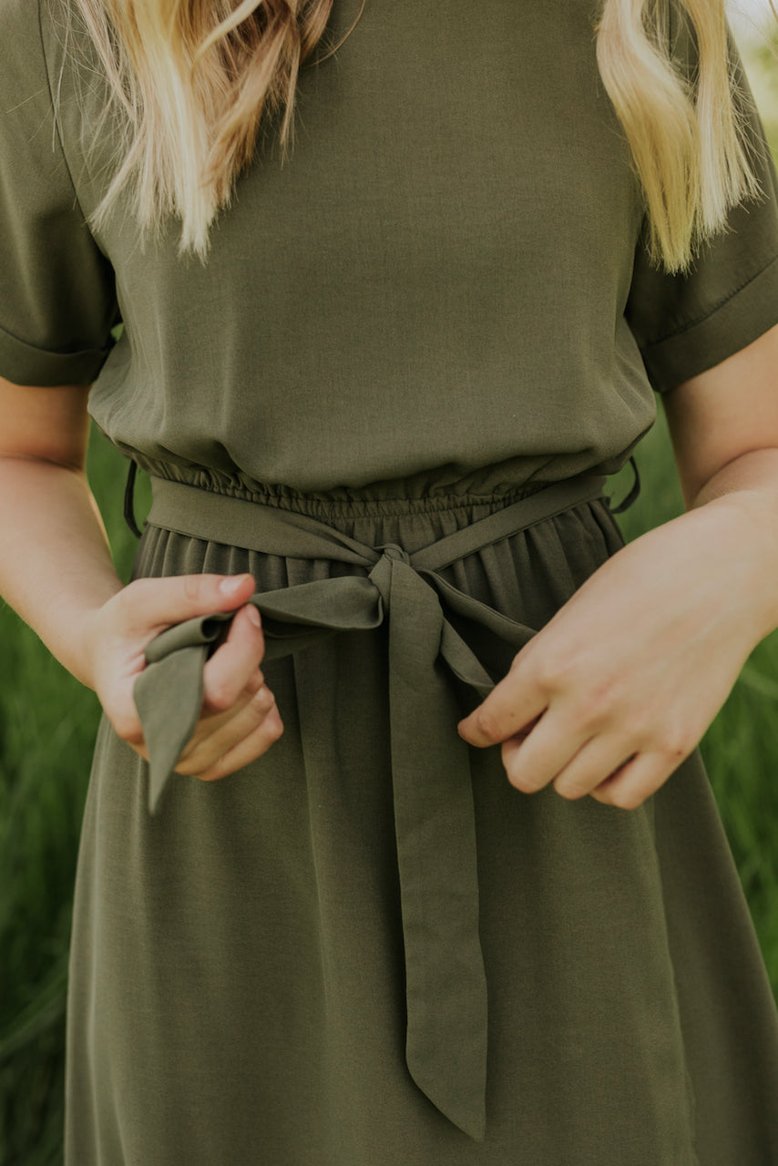 The Taylor Jane is sure to keep you trendyΒ + comfortable duringΒ any season! A gathered elastic waist with a working tie, paired with short, cuffed sleeves, and a round neckline with a keyhole buttoned closed in the back will add the perfect amount of femininity to your wardrobe.