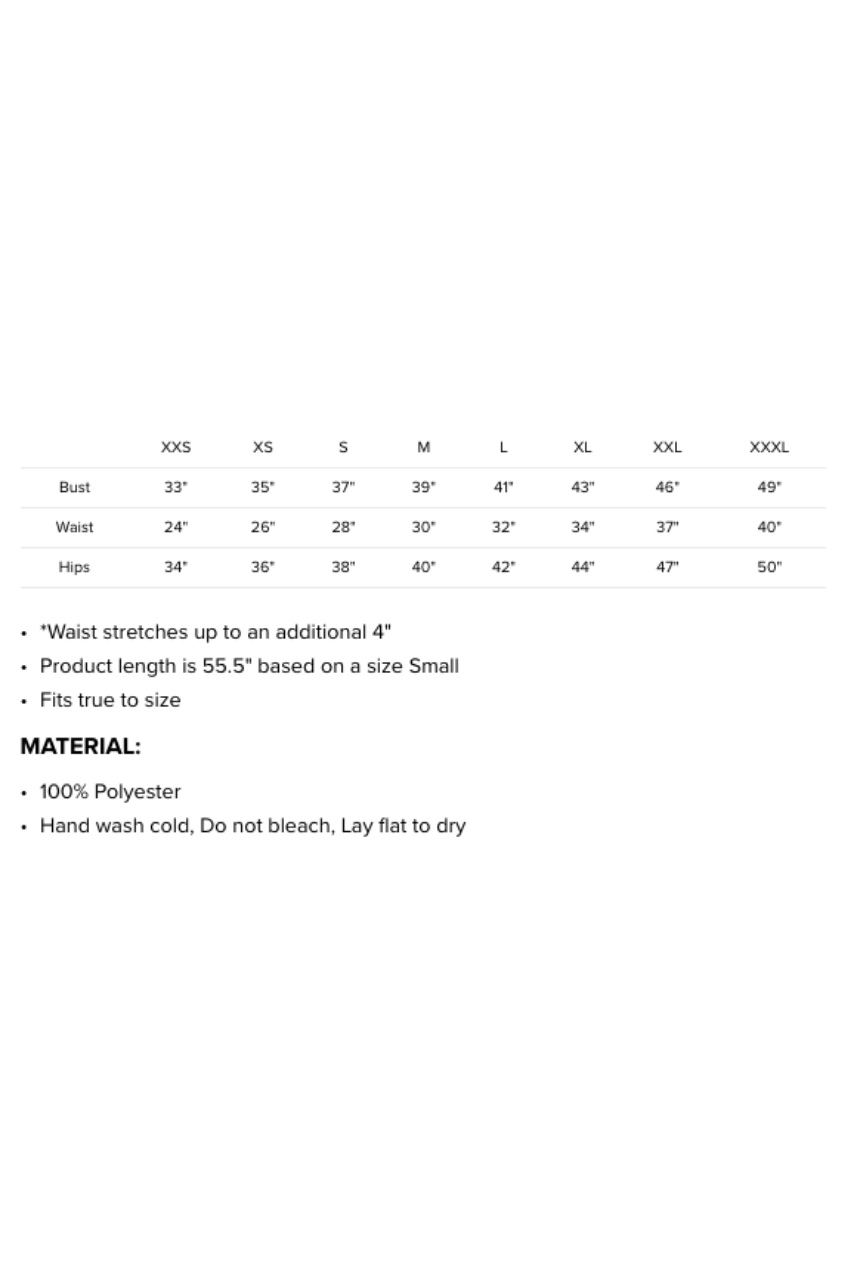 | Bust | 33" | 35" | 37" | 39" | 41" | 43" | 46" | 49" |