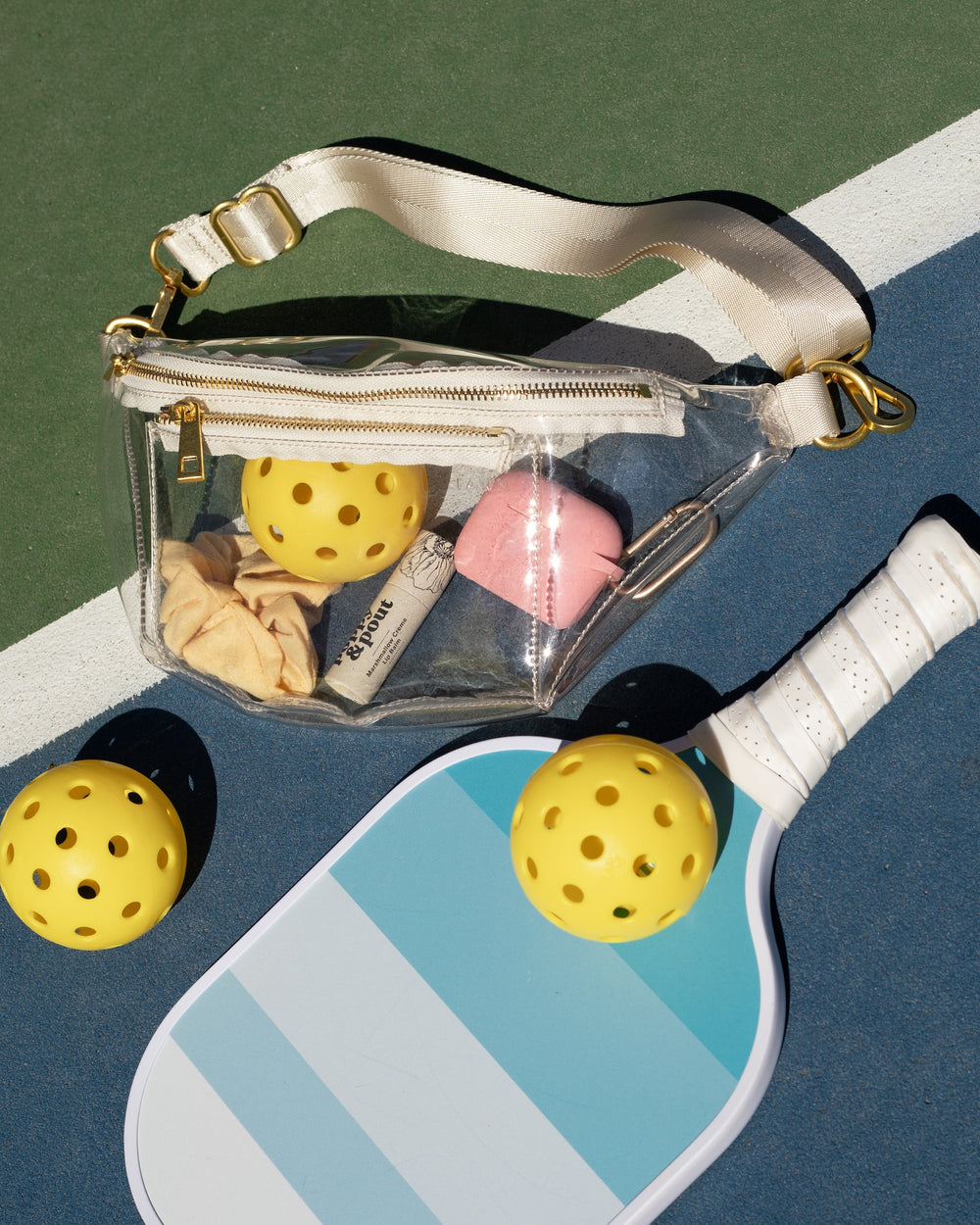 Introducing the Clear Fawny Pack! This see-through version of our popular Fawny Pack is the perfect accessory for hands-free fun at concerts, sporting events, theme parks, the pool, or the beach! The transparent design makes the contents of your bag easy to see, which means it's a safe but stylish option for public events where clear bags are often required. The material wipes clean and is water-resistant, so you don't have to stress about splashing water on your Fawny Pack or spilling a drink on it when you're cheering on your favorite sports team or rocking out to your favorite song!