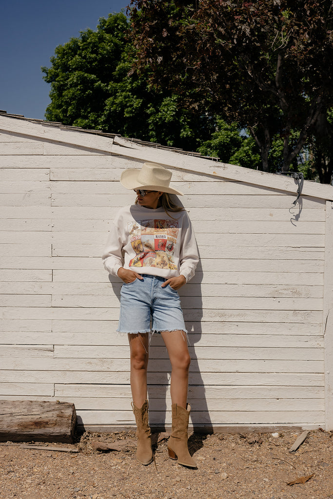 This rodeo-themed pullover features bold western graphics and iconic rodeo motifs. Made from soft, cozy fabric, it’s perfect for adding rugged style and comfort to your look.