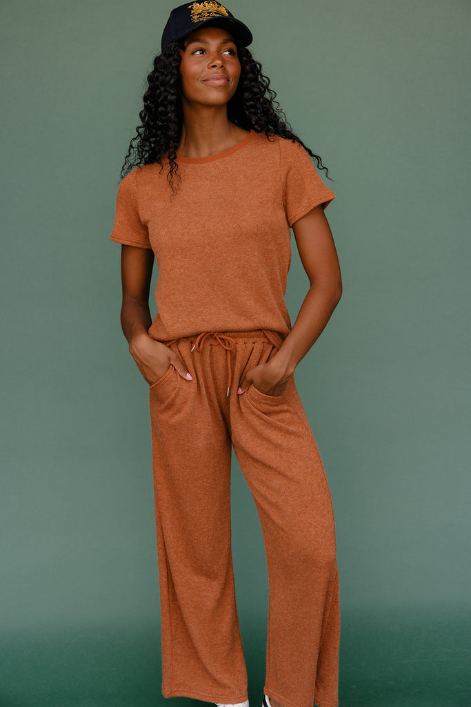 The matching lounge pants to your rust tee — soft, flowy, and ready for anything from chill days to cramming sessions.