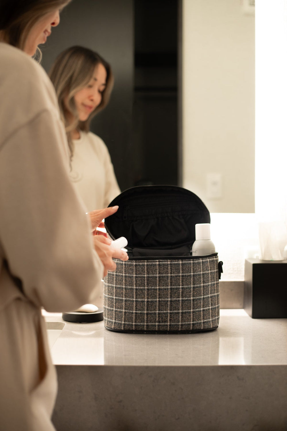 Store your cosmetic and toiletry essentials in style with the Fawn Train Case! This sleek zip-around closure case is made from premium matte faux leather and includes an adjustable messenger strap. The Train Case can fit all your daily must-haves, from skincare, haircare and make-up, to deodorant and a toothbrush. It includes 4 elastic band holders, 5 interior pockets and a zipper pocket to keep jewelry and other smaller items secure. The Train Case makes for perfect toiletry bag for travel and everyday use!