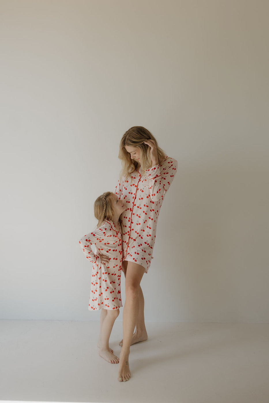 Our sleeping dress now available in toddler sizes! Featuring functional front buttons for easy wear and a stylish high-low cut at the hem, this dress offers both full coverage and a flattering silhouette. Made from soft, breathable bamboo fabric, it’s perfect for a restful night’s sleep. For the ultimate matching moment, be sure to check out the adult version