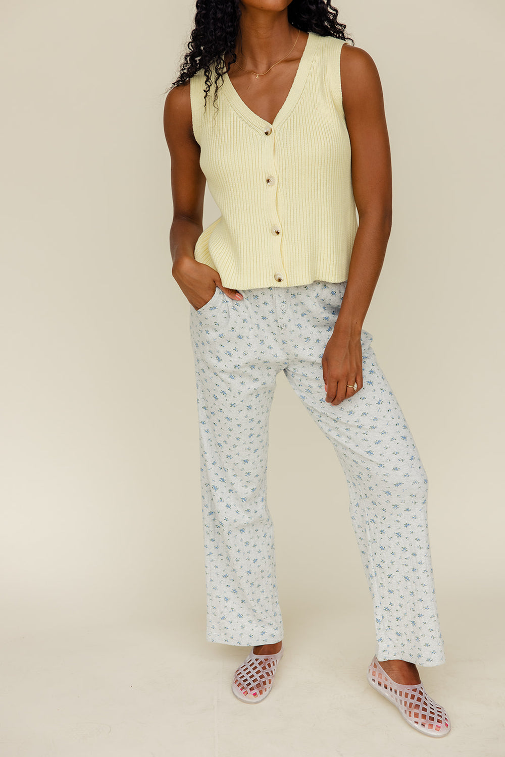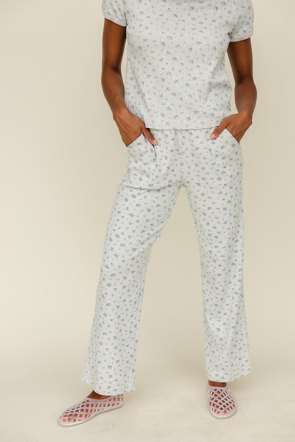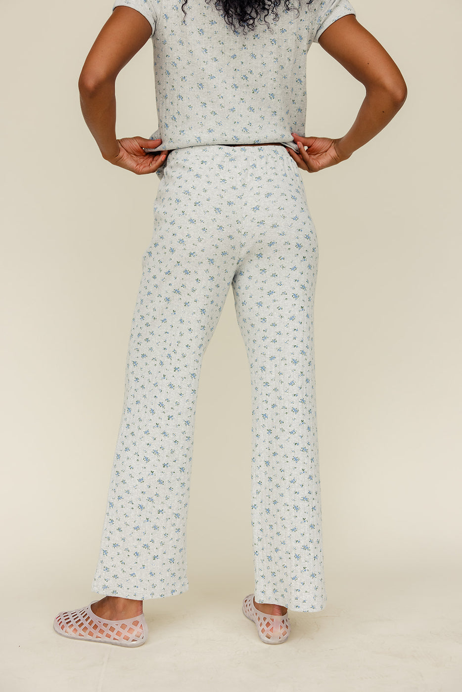 Breezy and bold, these blue floral wide-leg pants feature a cozy silhouette, elastic waistband, and dainty floral print—perfect for effortless summer style. Pair with the matching tee for the perfect set.
