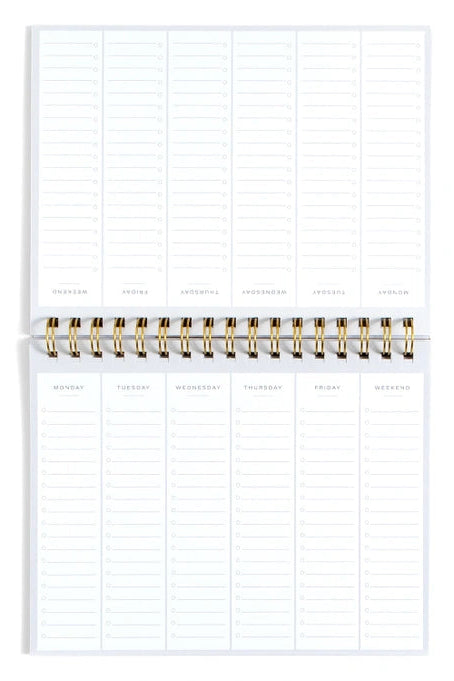 Get your week in check with the Undated Spiral Weekly Planner. With 150 pages of clean, minimalist layouts, this 7×9” planner gives you space to organize every day—Monday through weekend—without the pressure of pre-filled dates. The gold twin-wire spiral binding lays flat for easy writing, and the structured checklist format helps you stay on task and feel accomplished (hello, checkmarks!). Ideal for work, school, or home life. A great pick for goal-setters, list-lovers, and anyone ready to make each week count—on their own schedule.