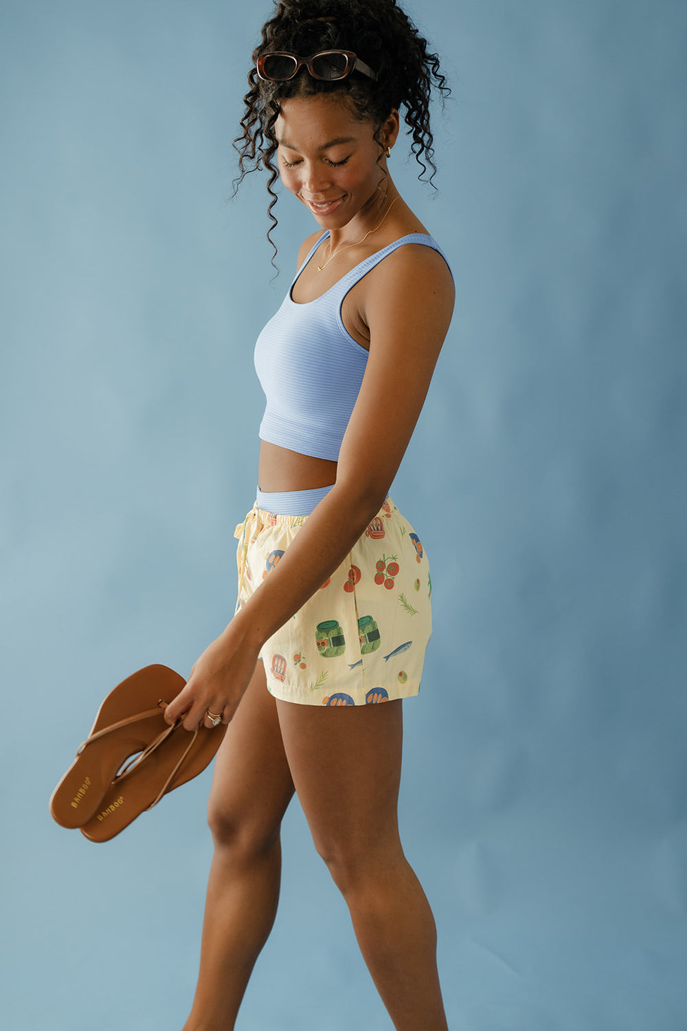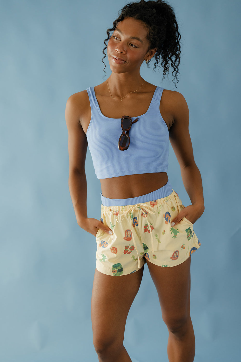 A sporty-meets-feminine swim top designed for comfort and confidence. Featuring a flattering mid-length cut and supportive fit, this vibrant blue top is perfect for swimming, lounging, or mixing and matching with your favorite bottoms.