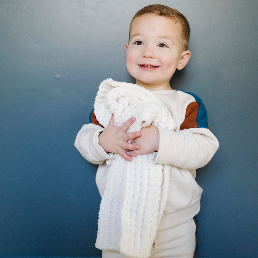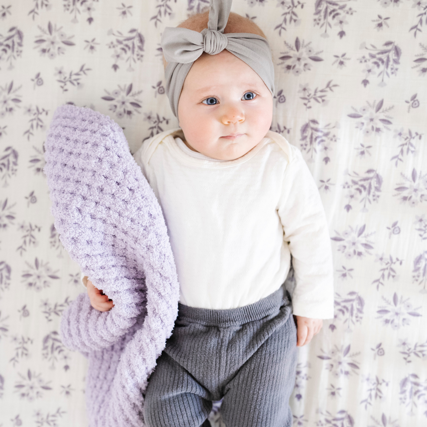 Meet the newest member of Saranoni’s “big three” baby blanket fabrics! Lush and Bamboni are now joined by Waffle Knit! Buttery, breathable and densely soft with a classic waffle pattern—now perfectly sized for little hands and snug wraps!