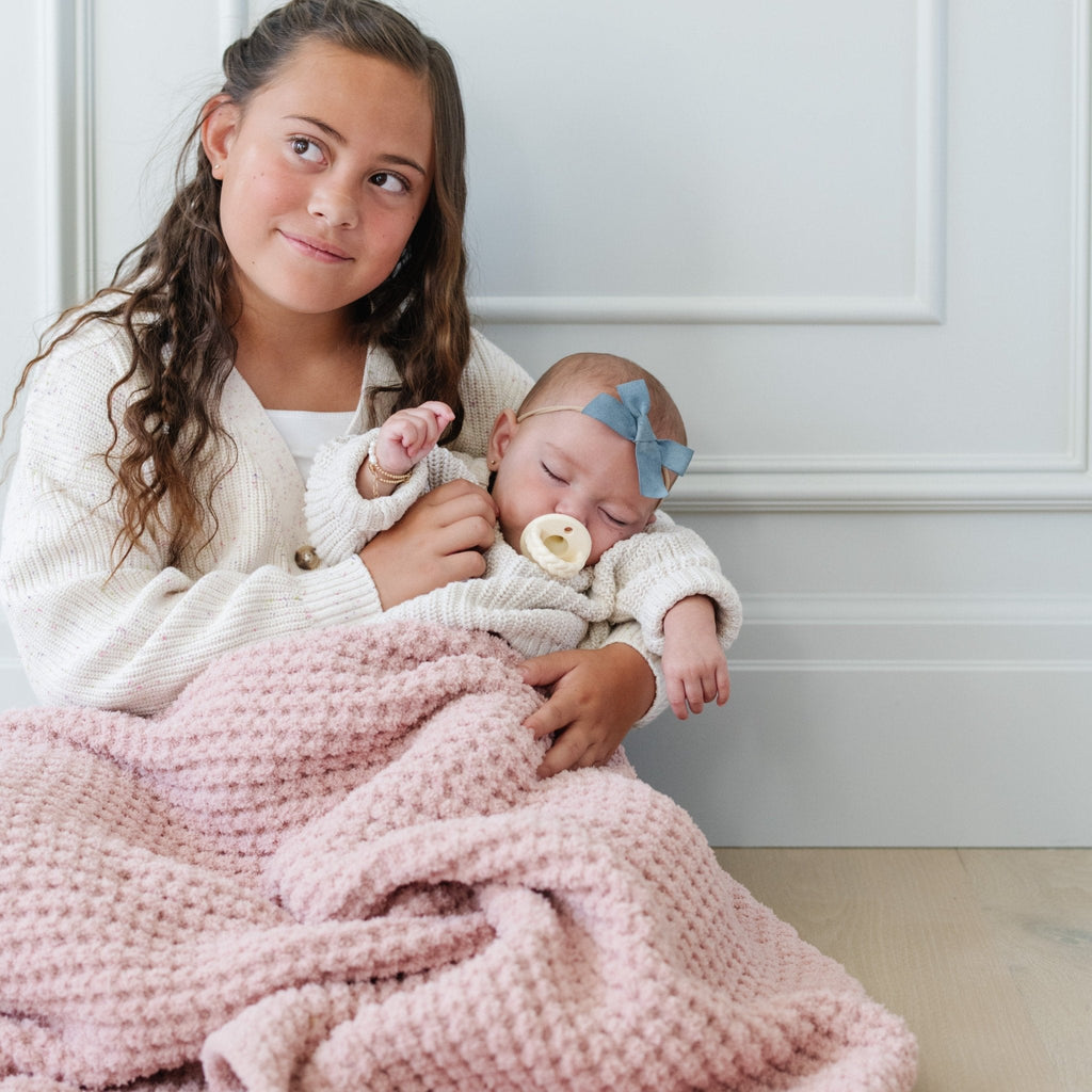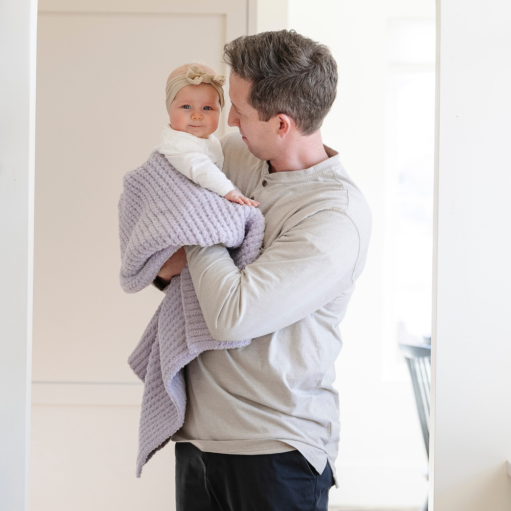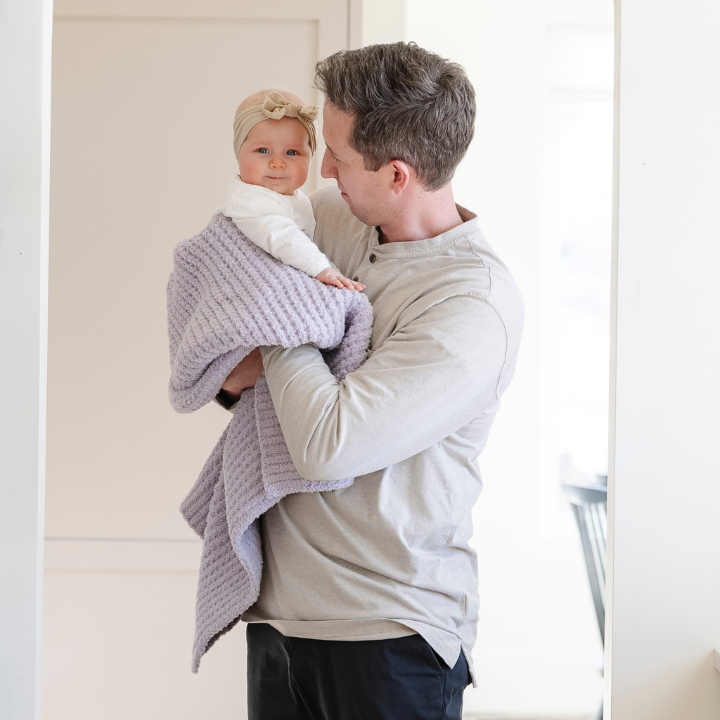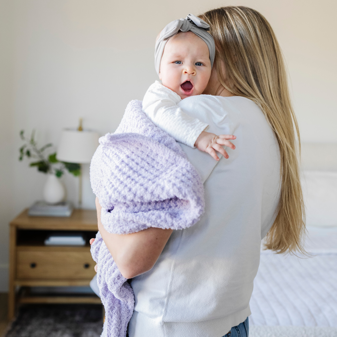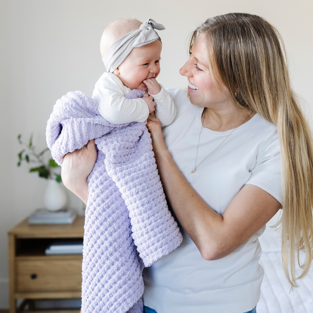 Meet the newest member of Saranoni’s “big three” baby blanket fabrics! Lush and Bamboni are now joined by Waffle Knit! Buttery, breathable and densely soft with a classic waffle pattern—now perfectly sized for little hands and snug wraps!